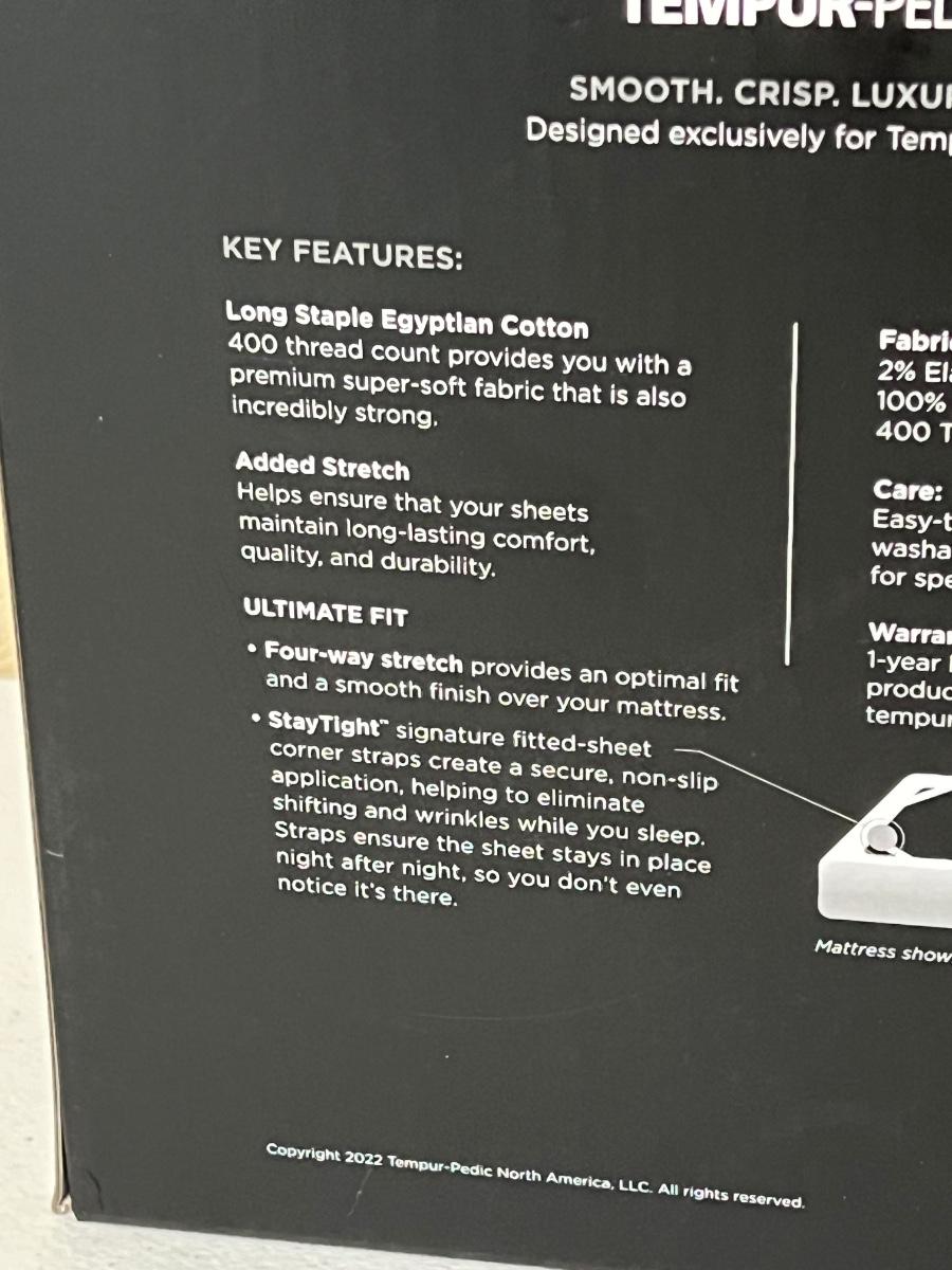 TEMPUR-PEDIC ~ Tempur-Luxe Egyptian King Sheet Set ~ NIB