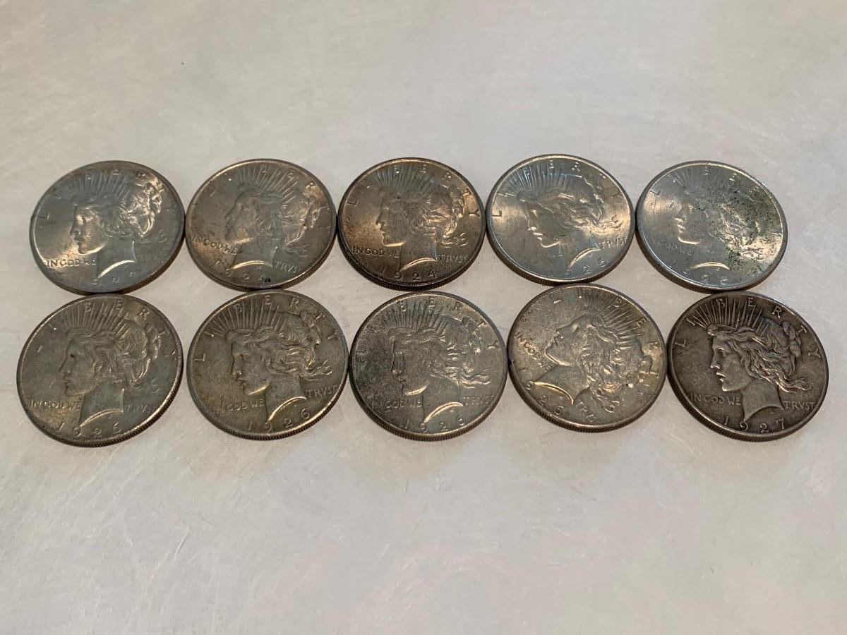 TEN 1923-1927 Silver Peace Dollars