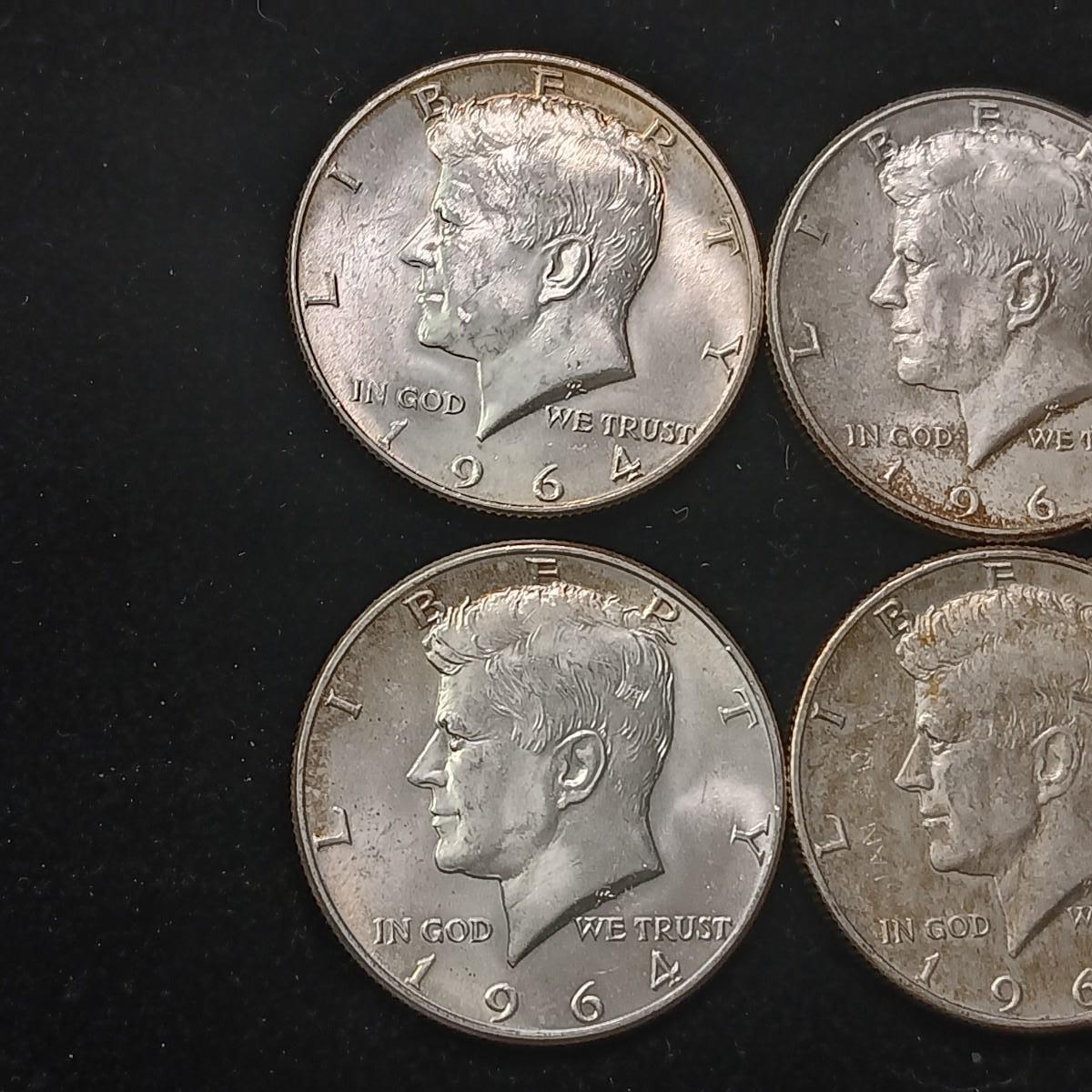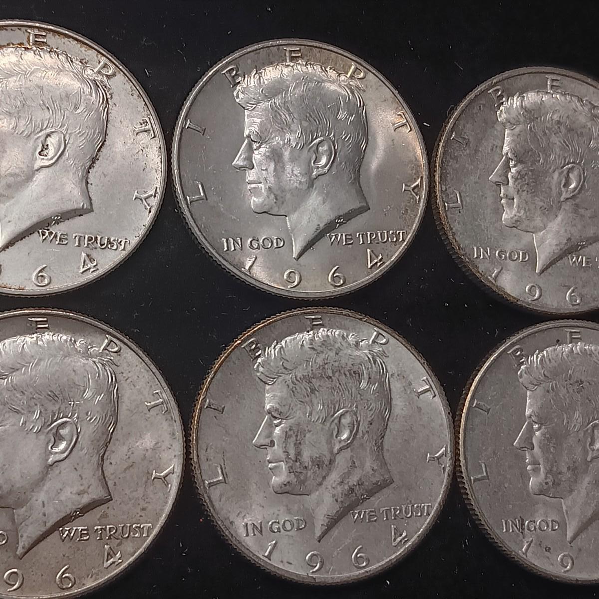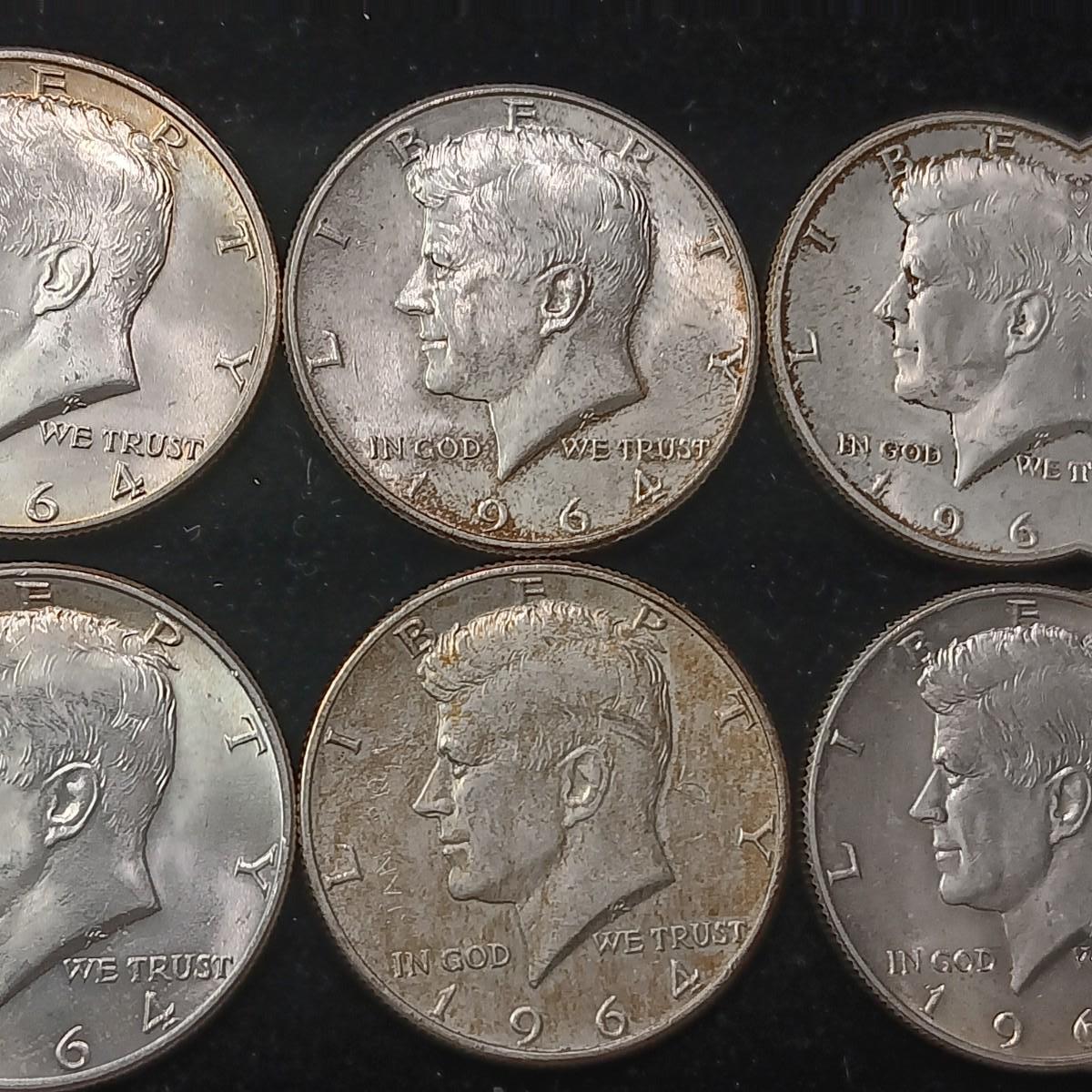 TEN 1964 KENNEDY SILVER HALF DOLLARS