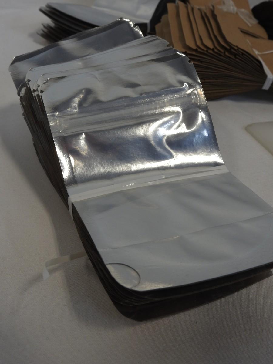 Ten 50ct 1oz Kraft Stand Up Pouches, Clear Silver/Brown - New