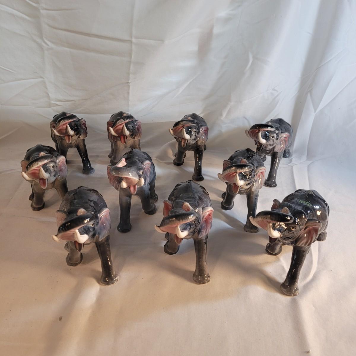 Ten Ceramic Elephants Made in Japan (LR-CE)