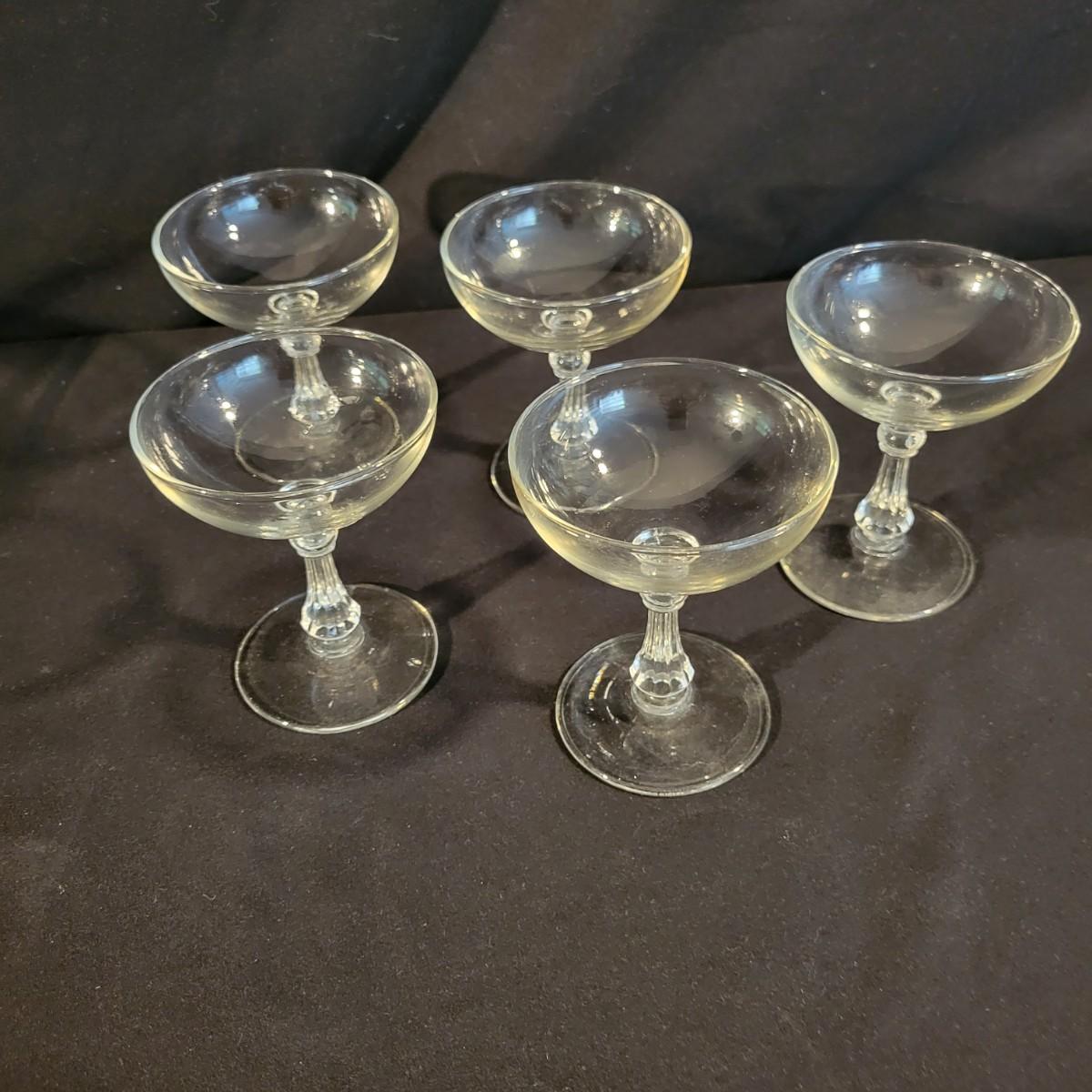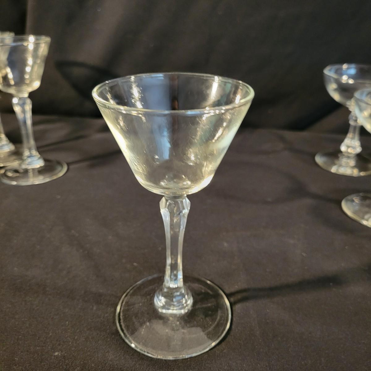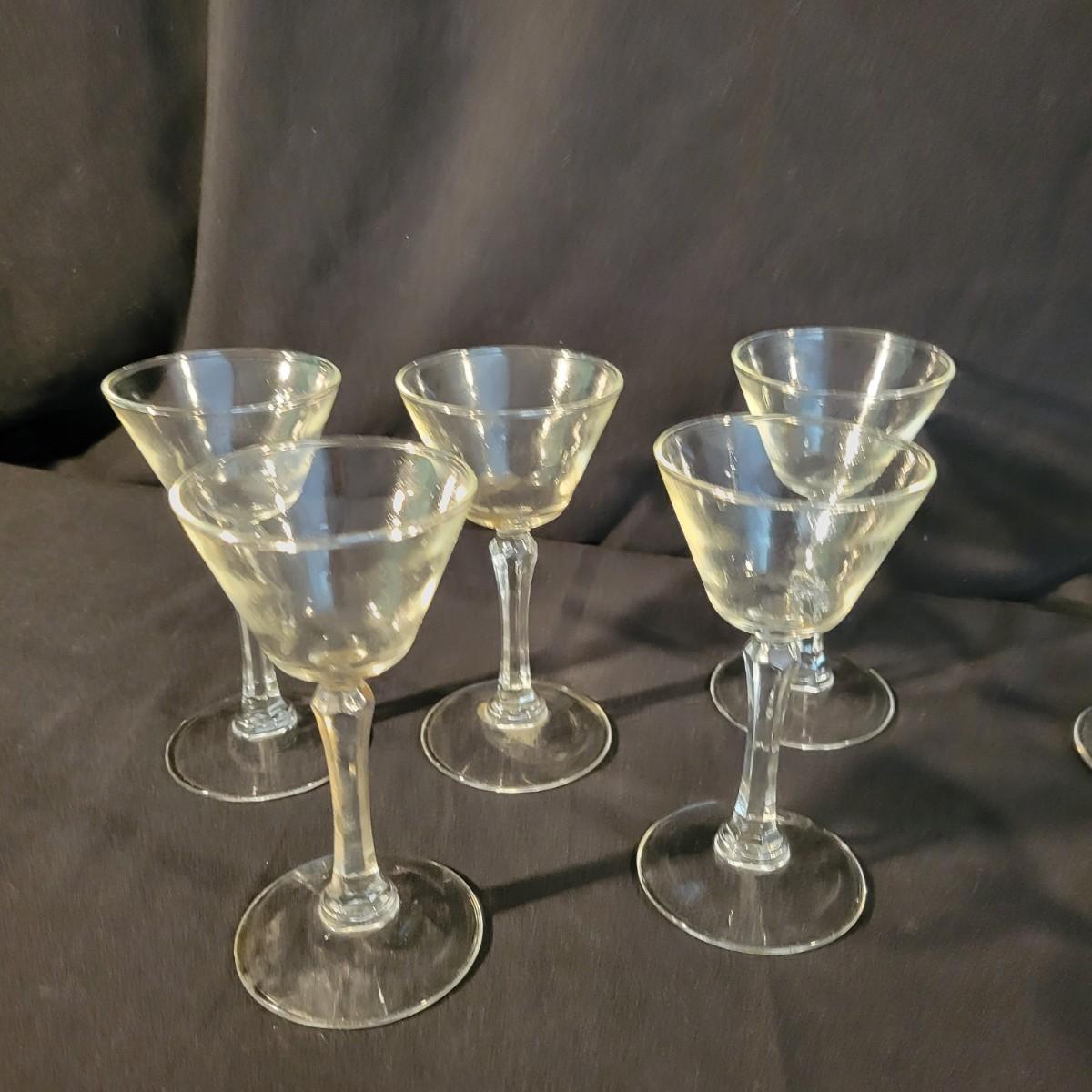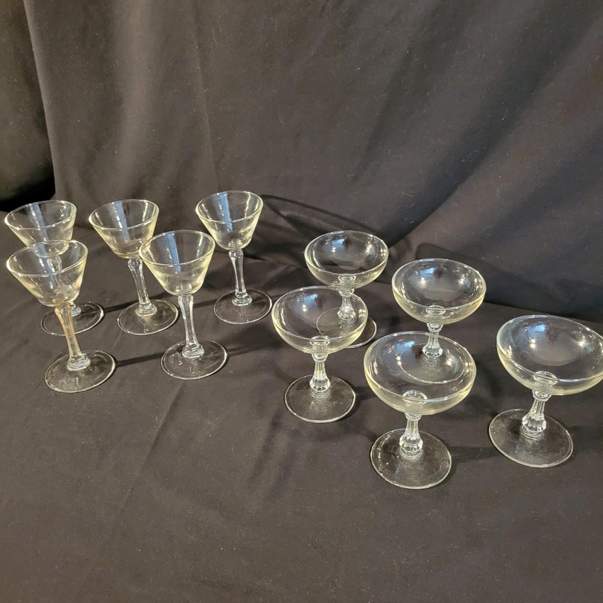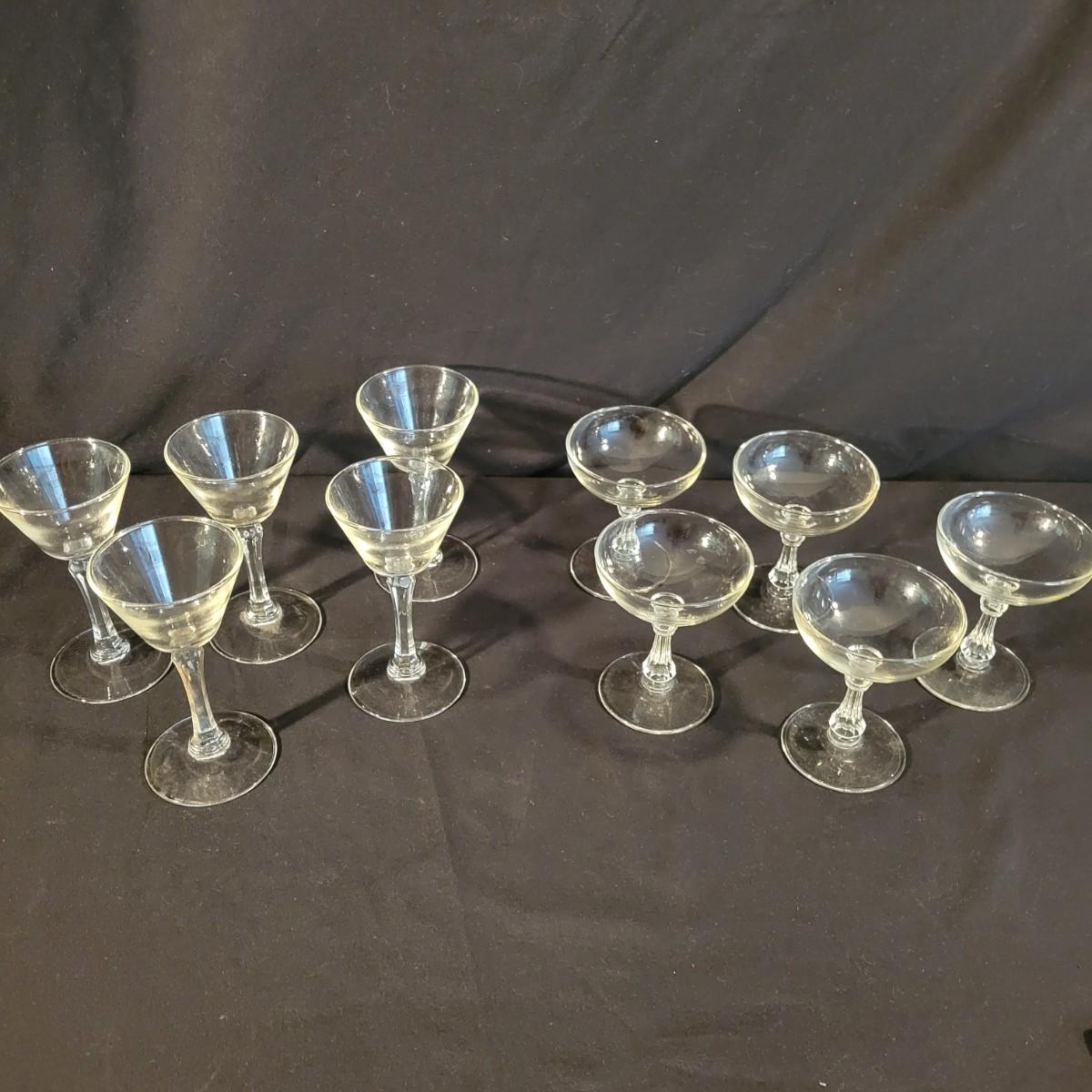 Two patterns of cocktail glasses with 5 of each pattern. All 10 glasses are in good condition with no notable damage. Tallest glass measures approximately 6" Shipping available