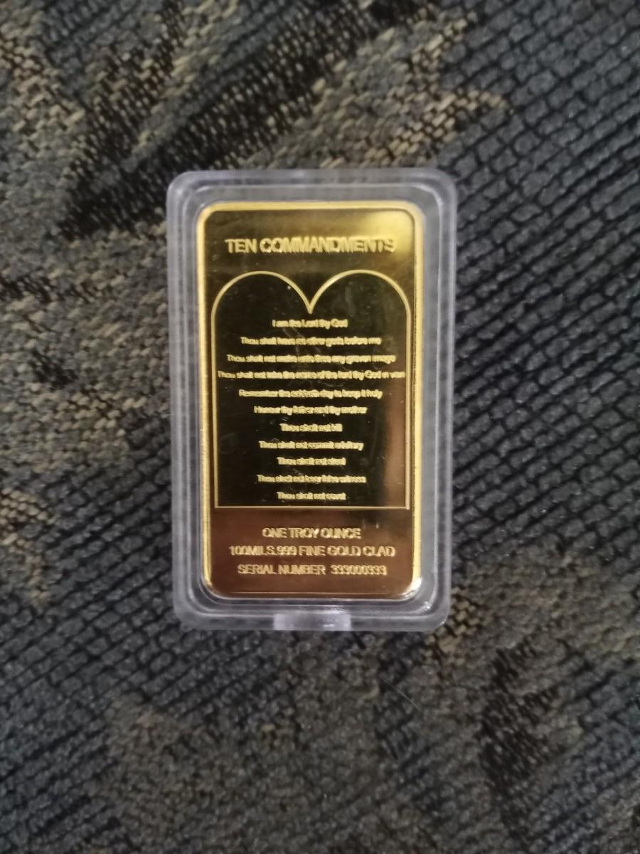 TEN COMMANDMENTS ONE TROY OUNCE ,999 FINE GOLD CLAD