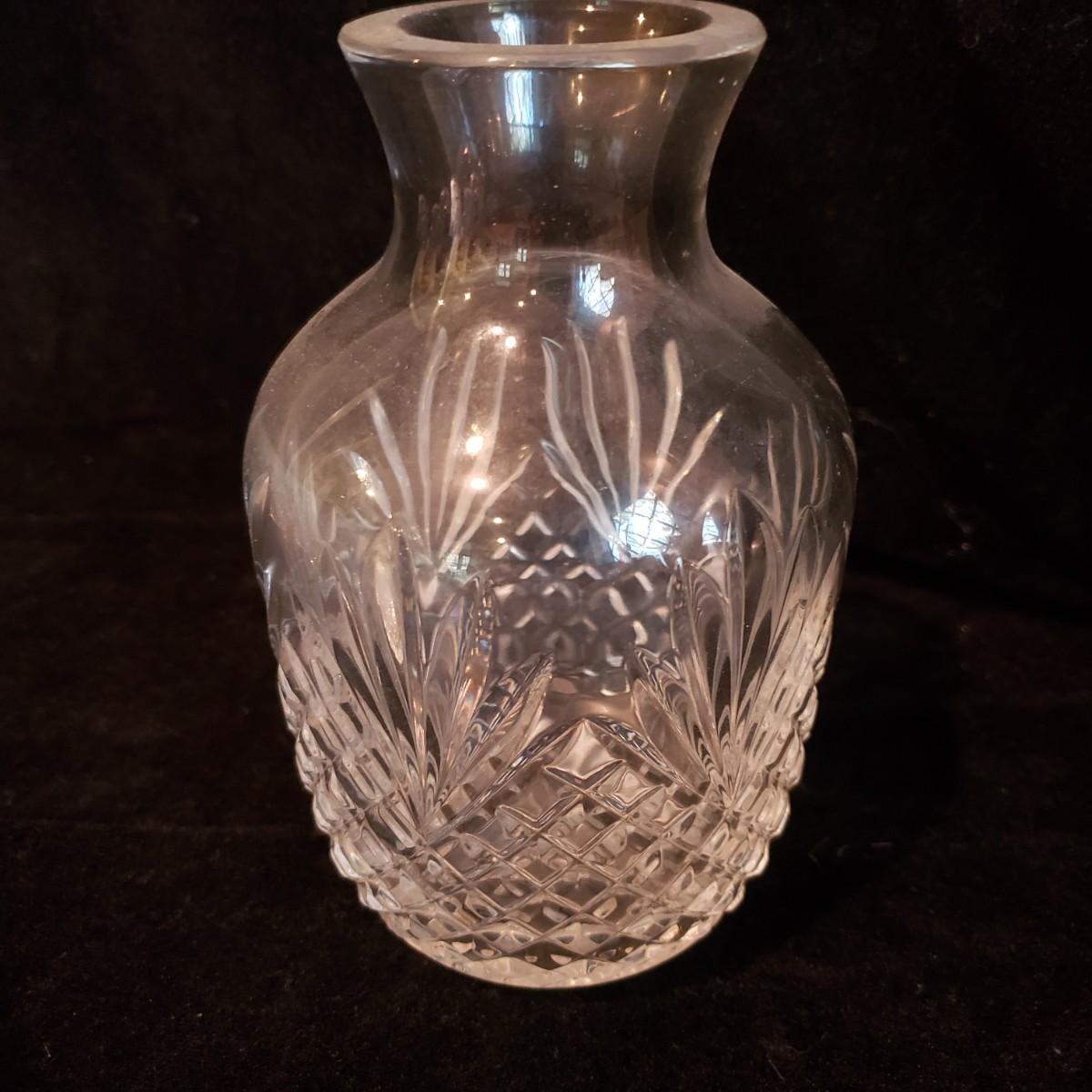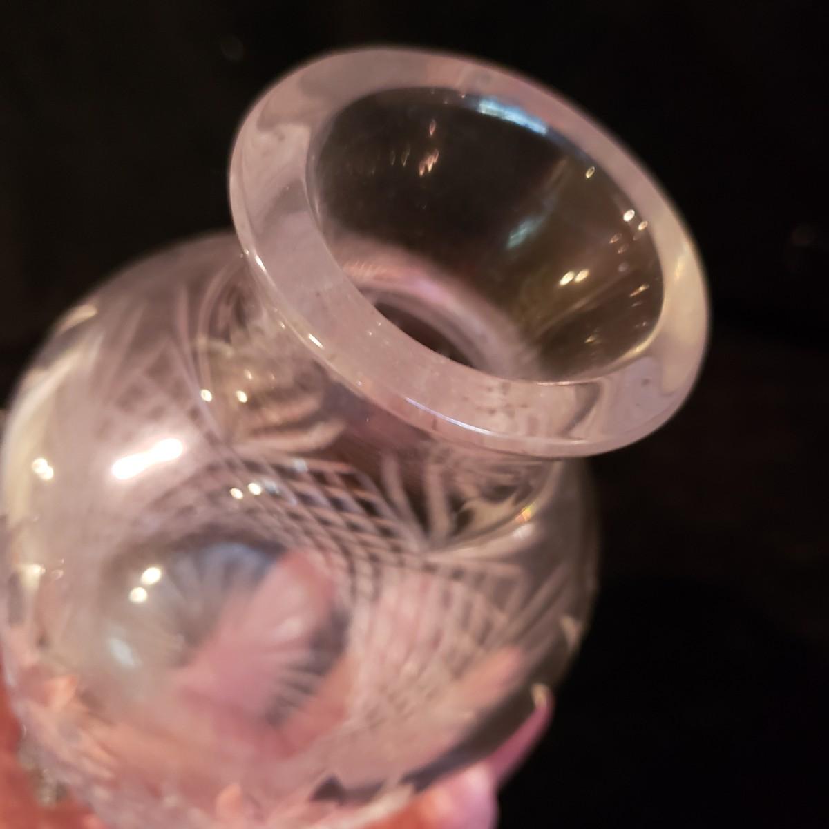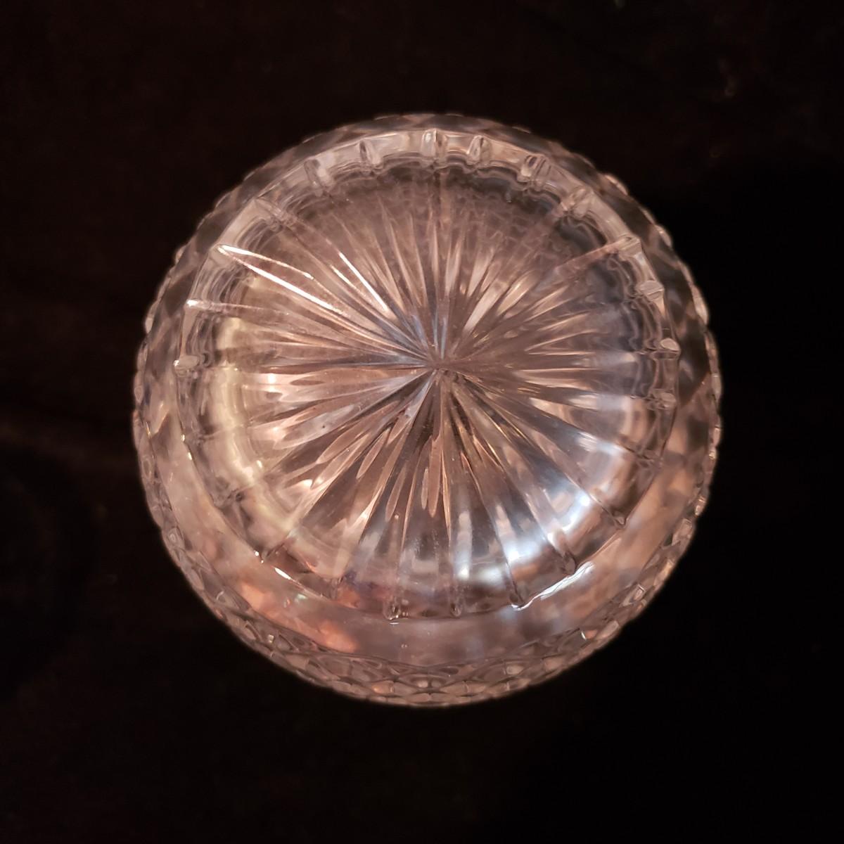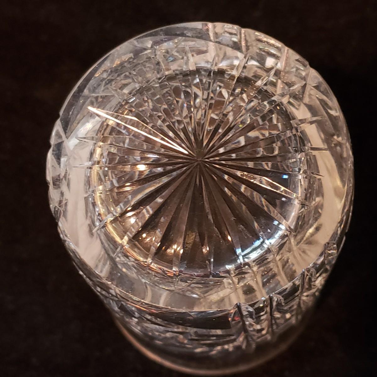 This lot features two sets of what appears to be crystal tumblers and a pineapple cut style decanter. There are seven matching tumblers with a sunburst pattern. The other three tumblers also have a sunburst pattern with vertical cuts added. The decanter has a pineapple styled cut.