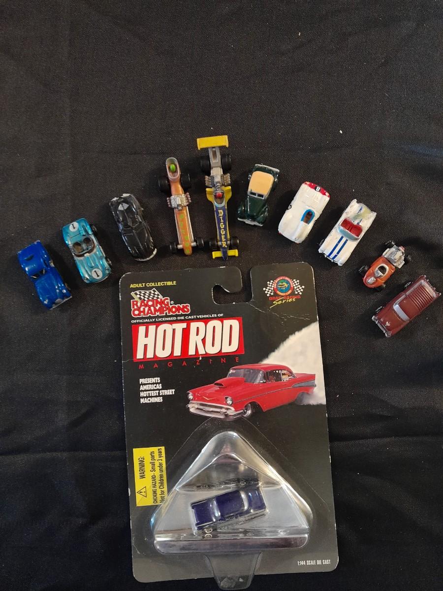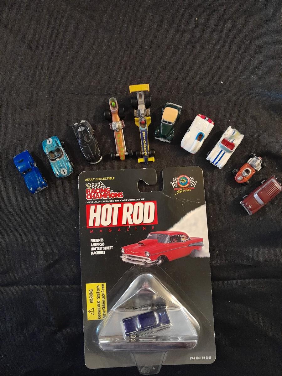 TEN MICRO MACHINE CARS AND A NEW IN PACKAGE RACING CHAMPIONS HOT ROD MICRO