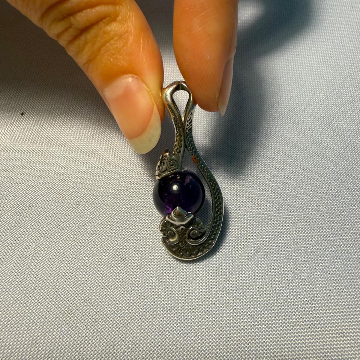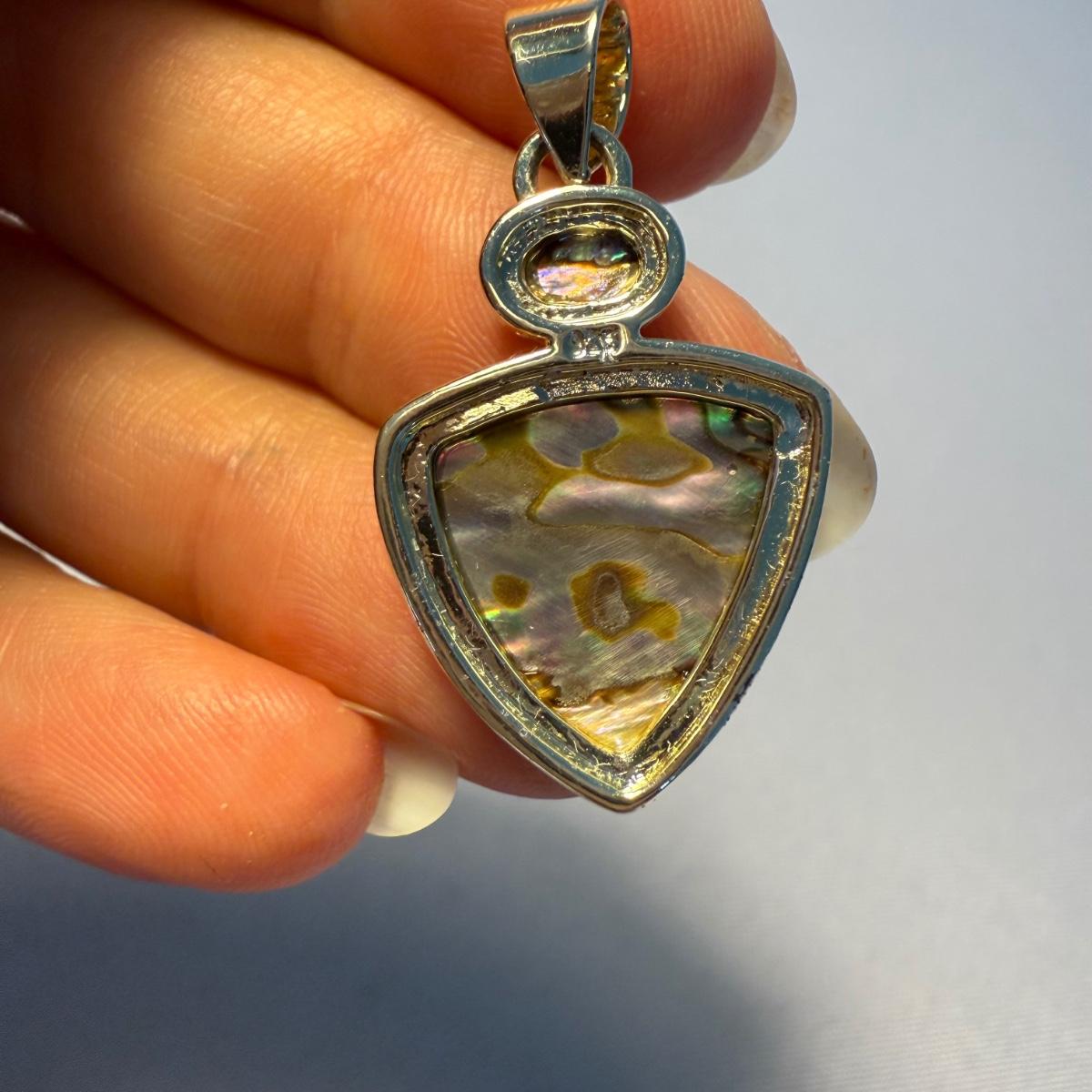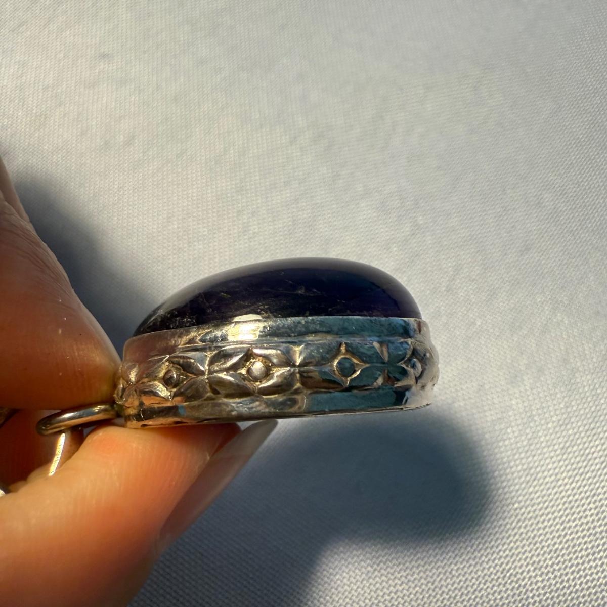 These are ten sterling and stone pendants. There are a rainbow of colors in this lot! The pendants average 1". All pendants have a "925" stamp, which was hard to photograph. Pendants come in a velvet, hard cardboard case with a glass lid. The case is worn on the corners. Please note that any price tag seen on an item was not put there by Sterling Transitions and does not reflect the current value of the item.