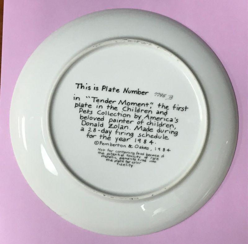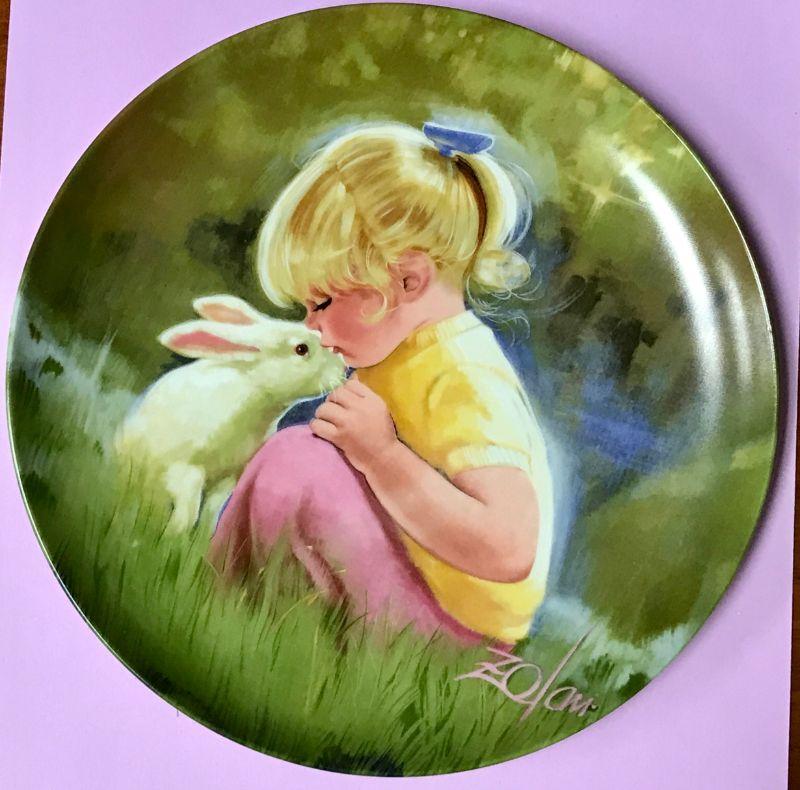 Tender Moment by Zolan Collectors Plate. Features a little girl and a bunny. Good Condition.