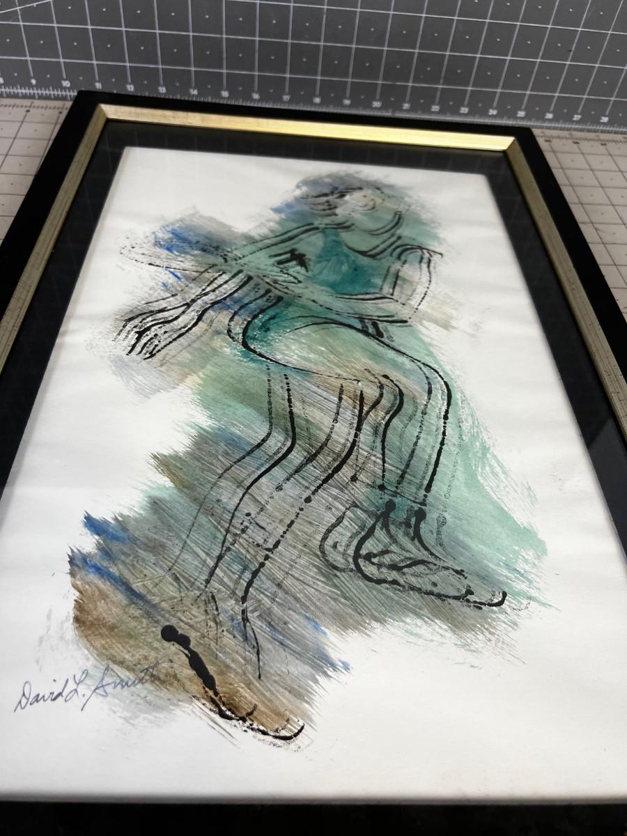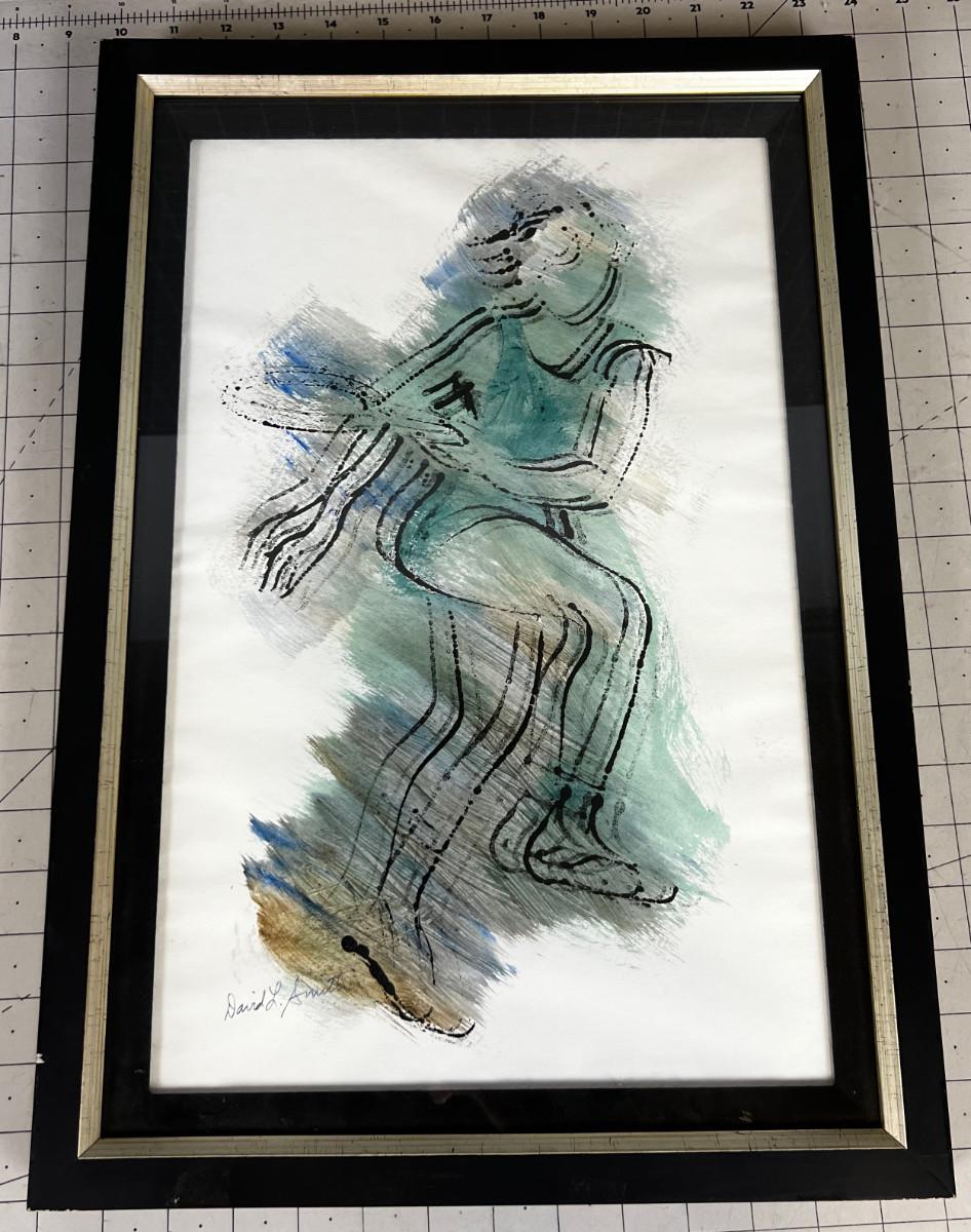 Tennis Player: Signed Water Color by David L. Smith, Framed