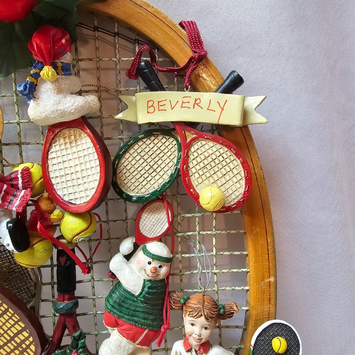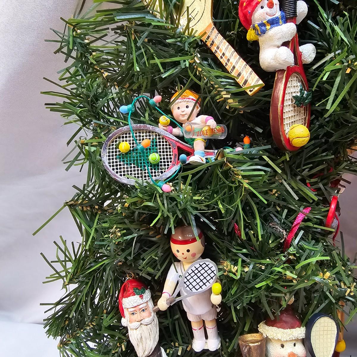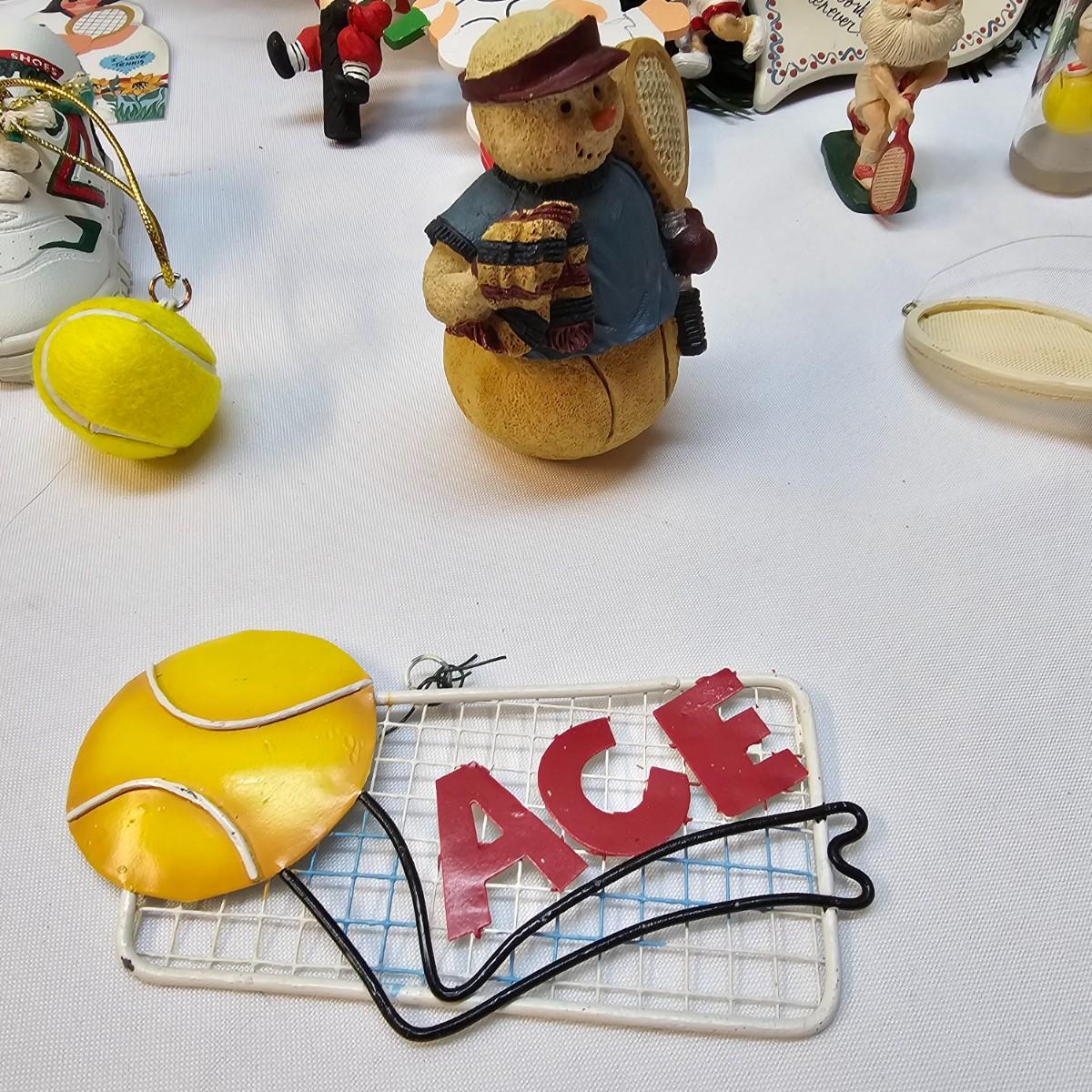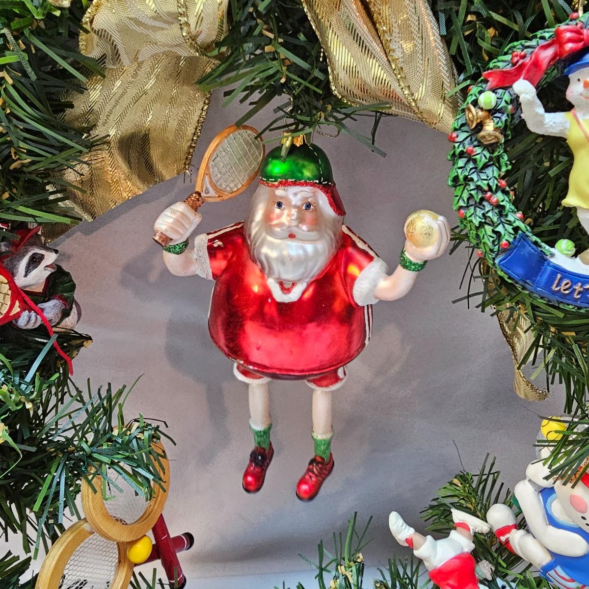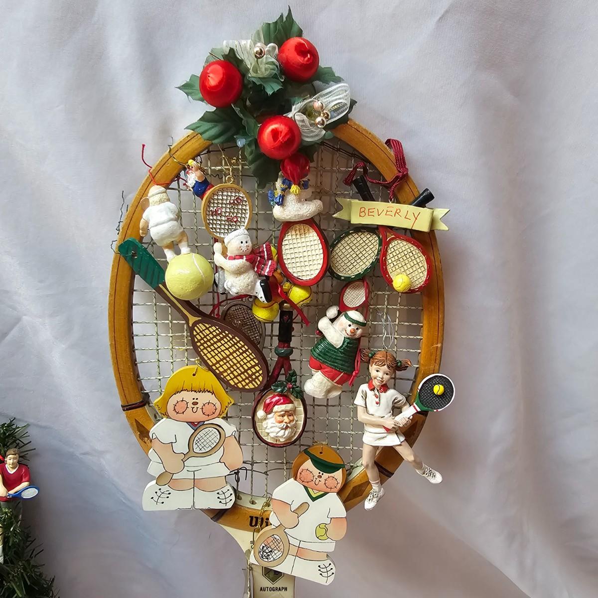 For the tennis aficionado a fun wreath and racket decorated with everything tennis. Kids, adults, snowmen and Santa all ready for the next serve. Also includes several other loose ornaments as well. See photos for details. Shipping available.