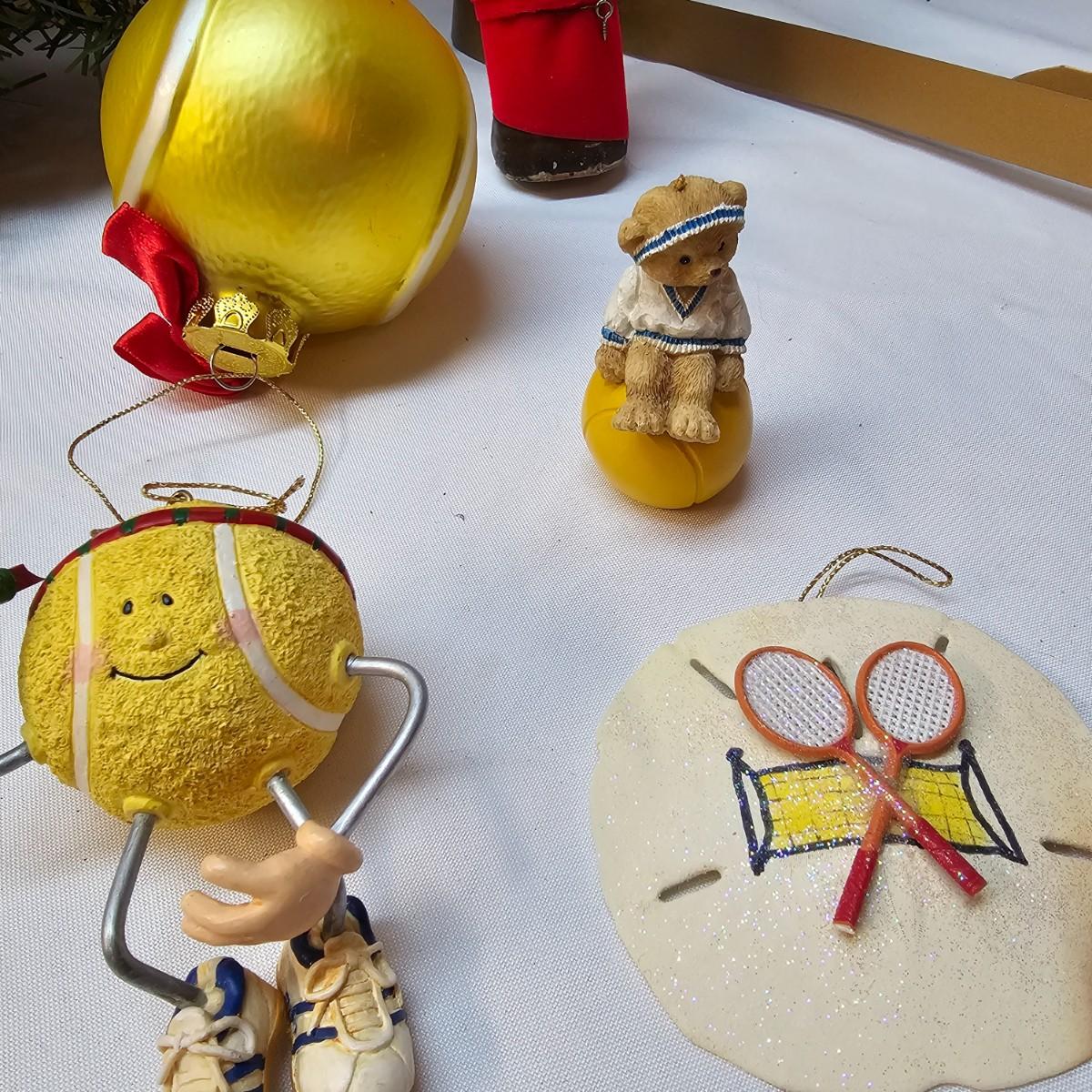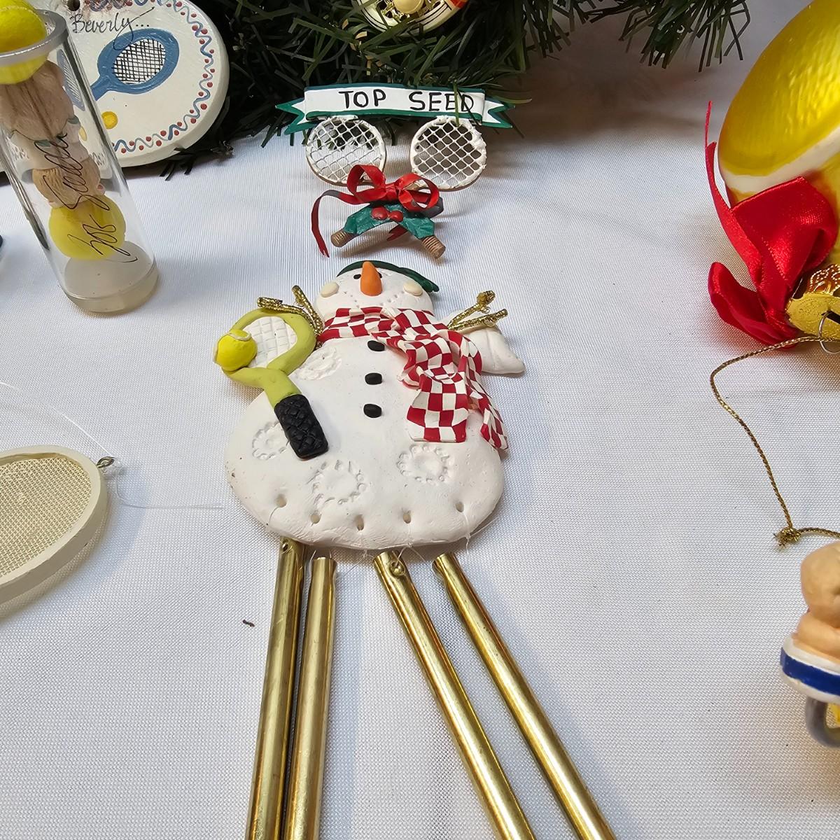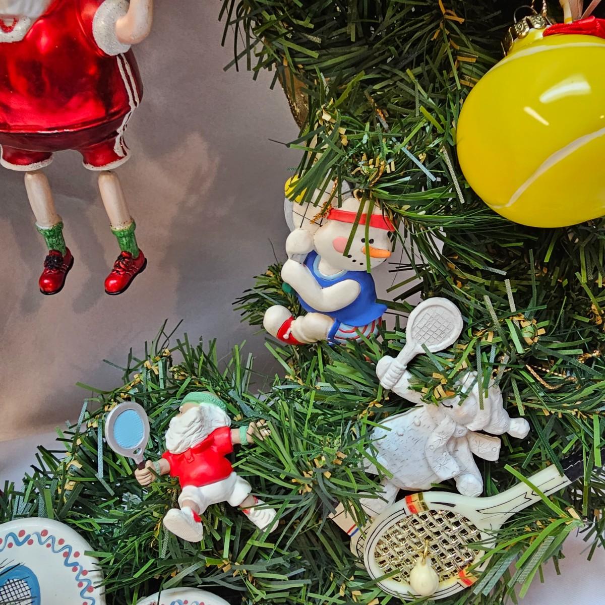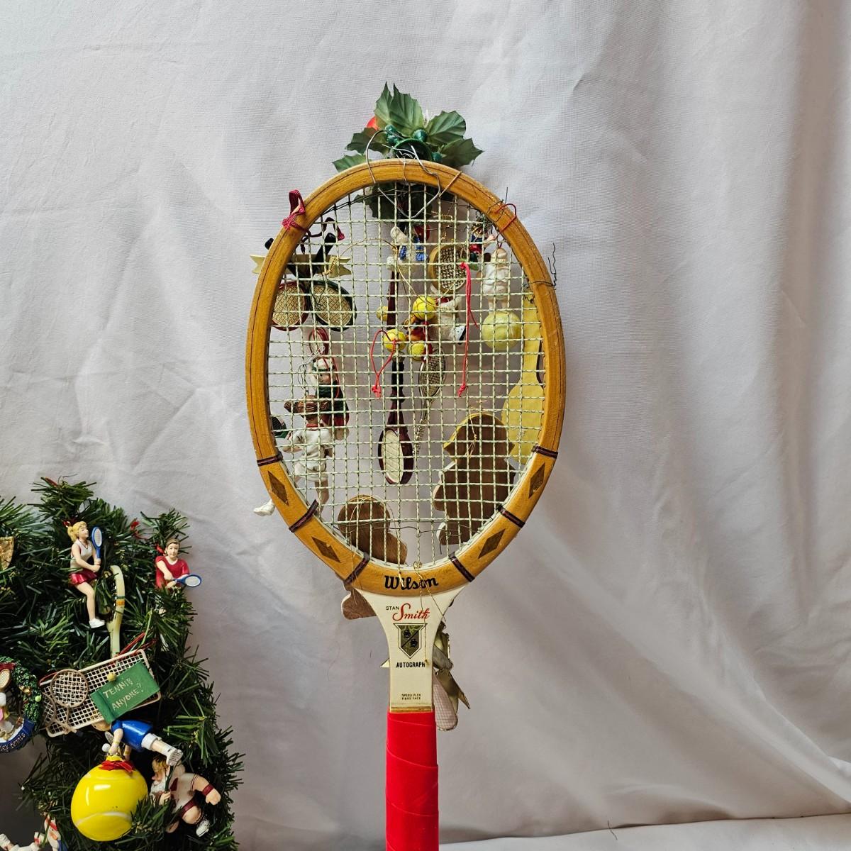 For the tennis aficionado a fun wreath and racket decorated with everything tennis. Kids, adults, snowmen and Santa all ready for the next serve. Also includes several other loose ornaments as well. See photos for details. Shipping available.