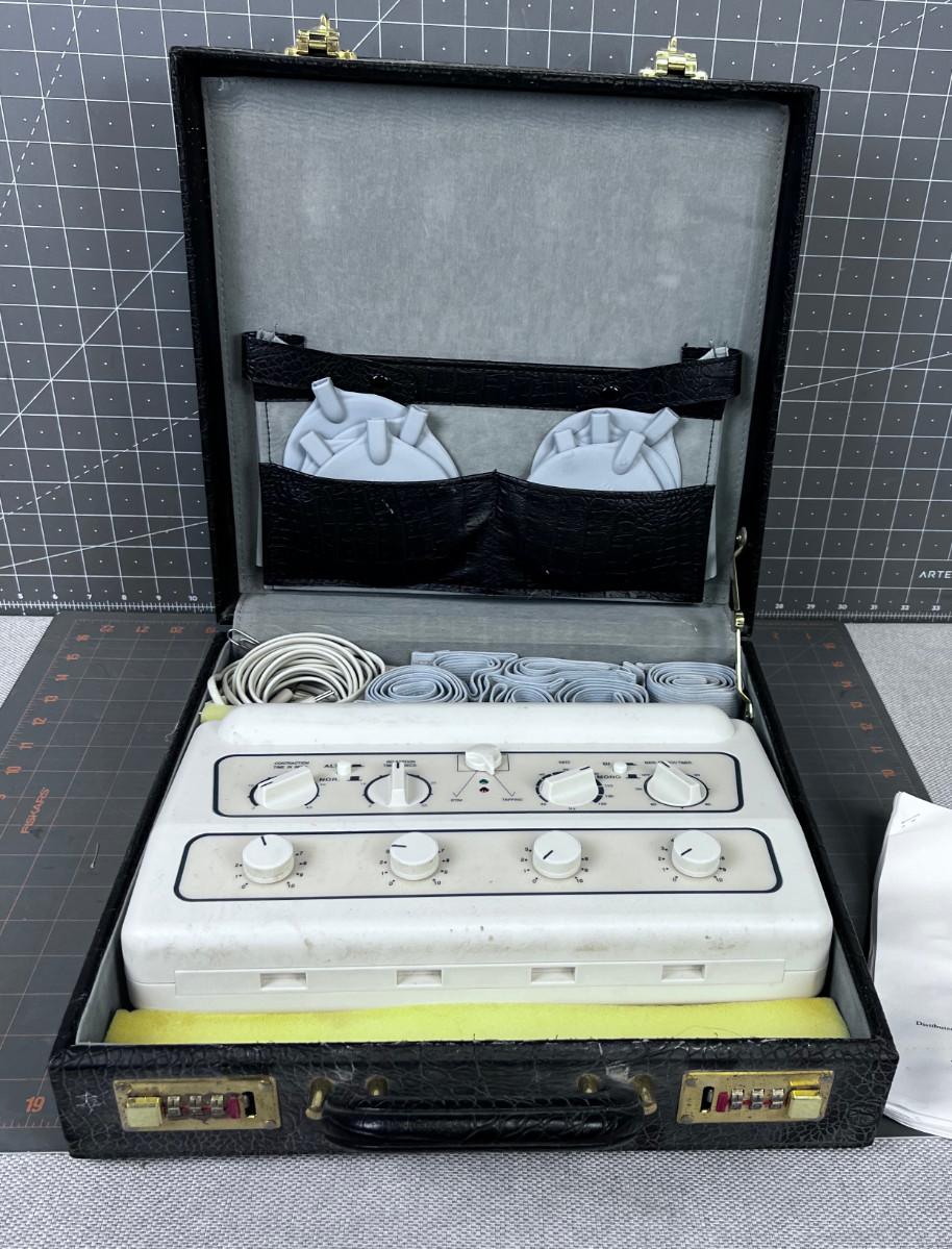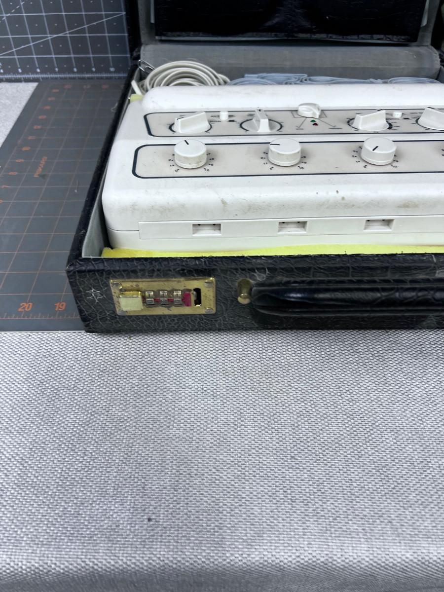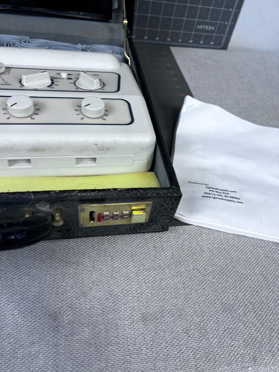 Tens Pain Relief Machine in CASE, comes in a Black Alligator Skin Faux Case.