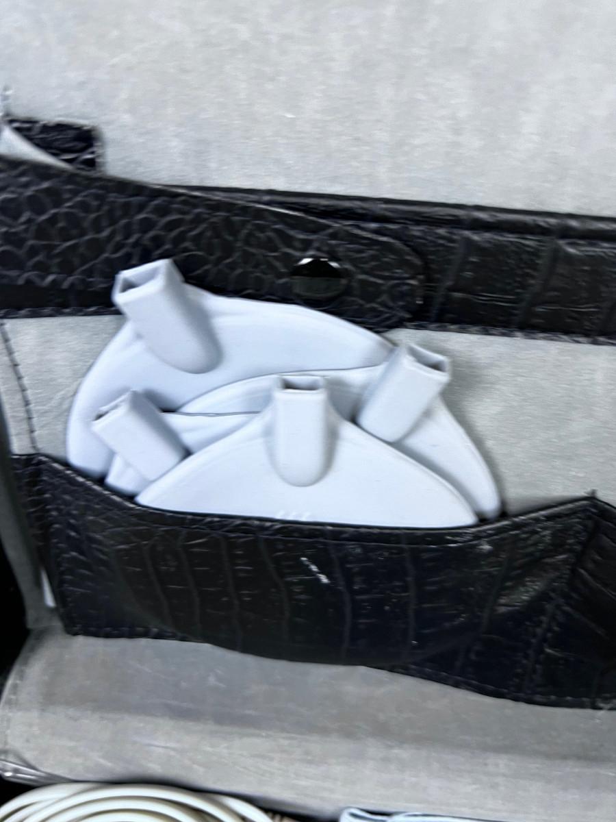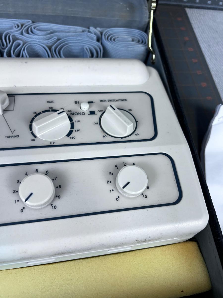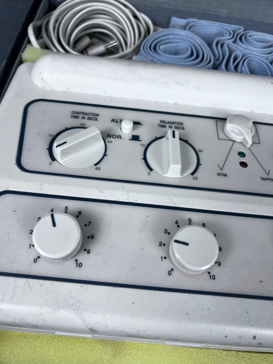 Tens Pain Relief Machine in CASE, comes in a Black Alligator Skin Faux Case.