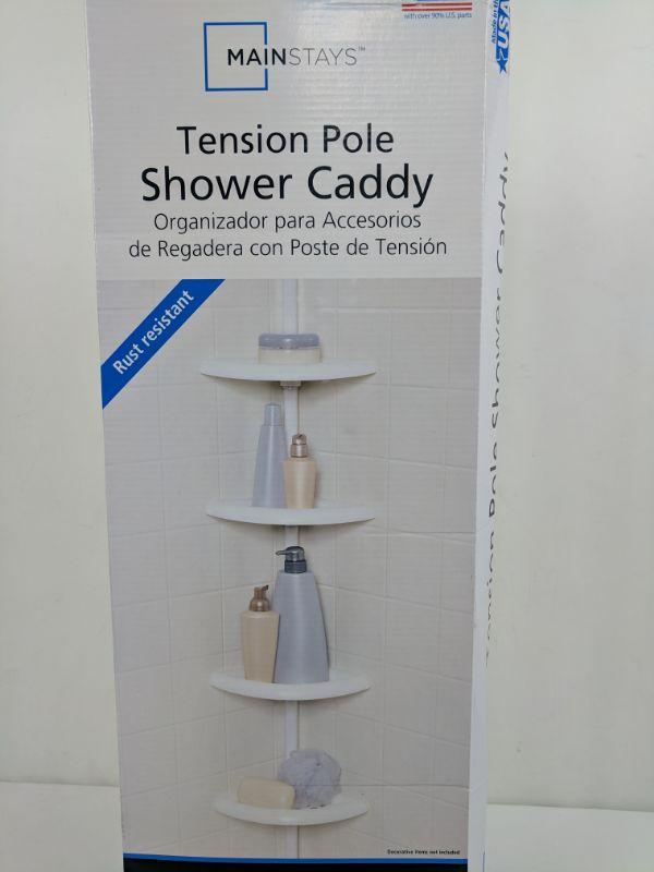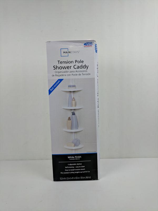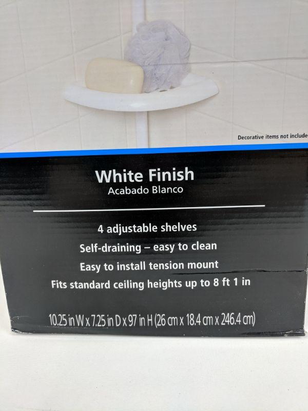 Tension Pole Shower Caddy, White Finish, 4 Adjustable Shelves, Open Box- New