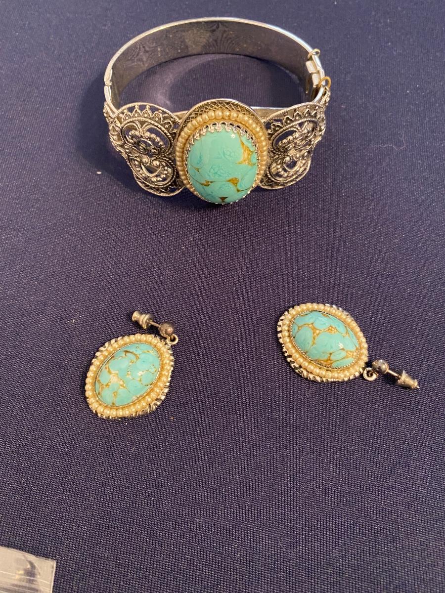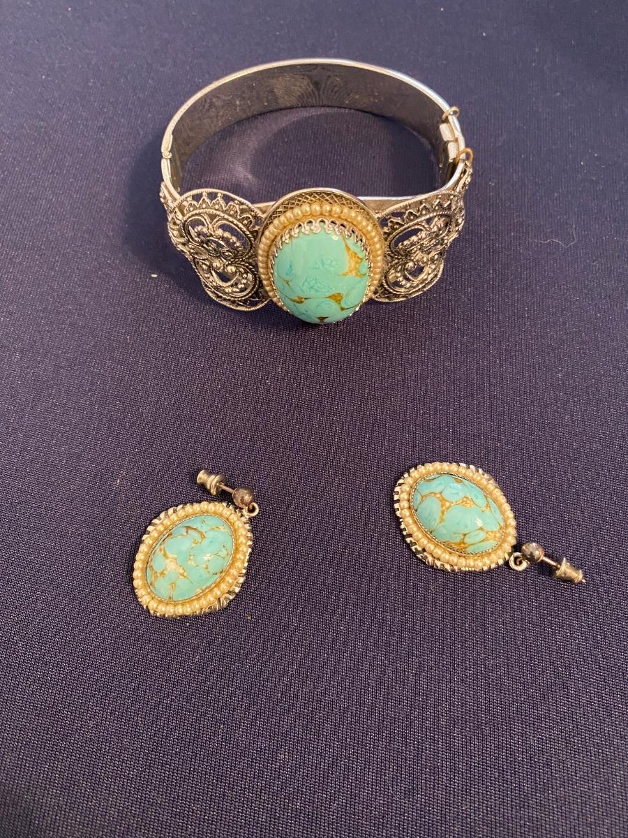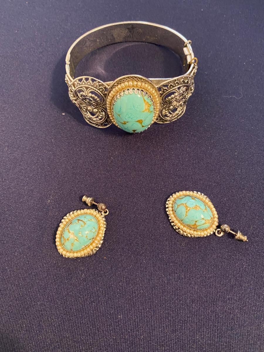 Terquoise Colored Stone Bracelet and Earrings Set Vintage