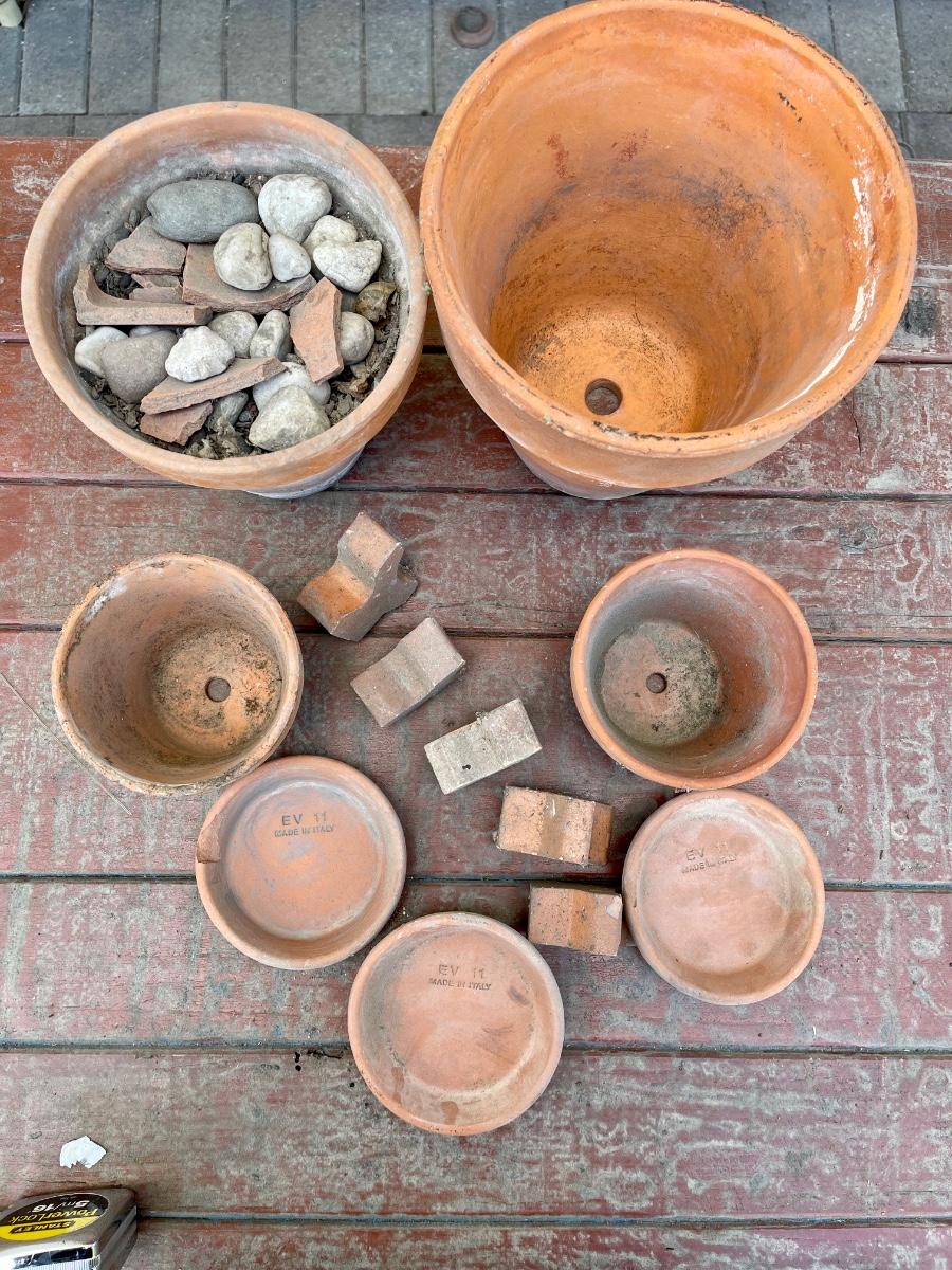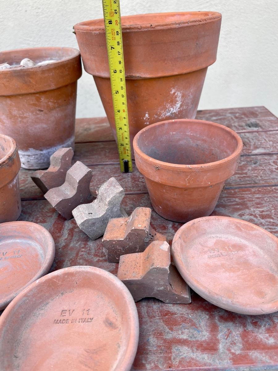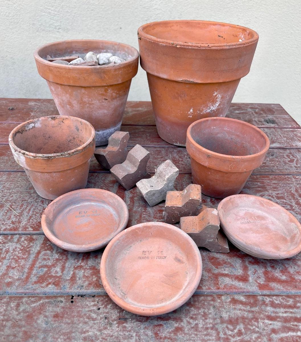Terracotta lot , pots, trays, pot elevator feet