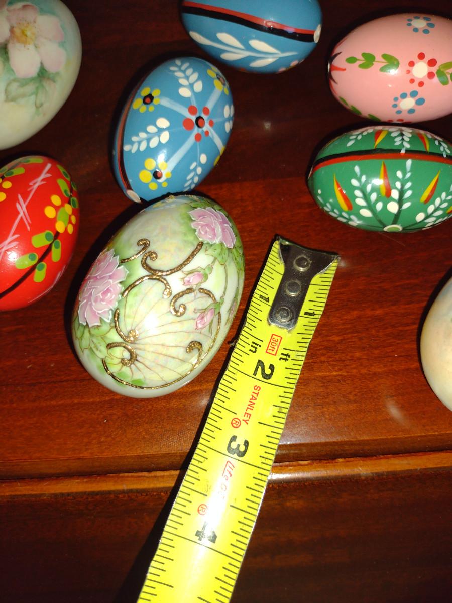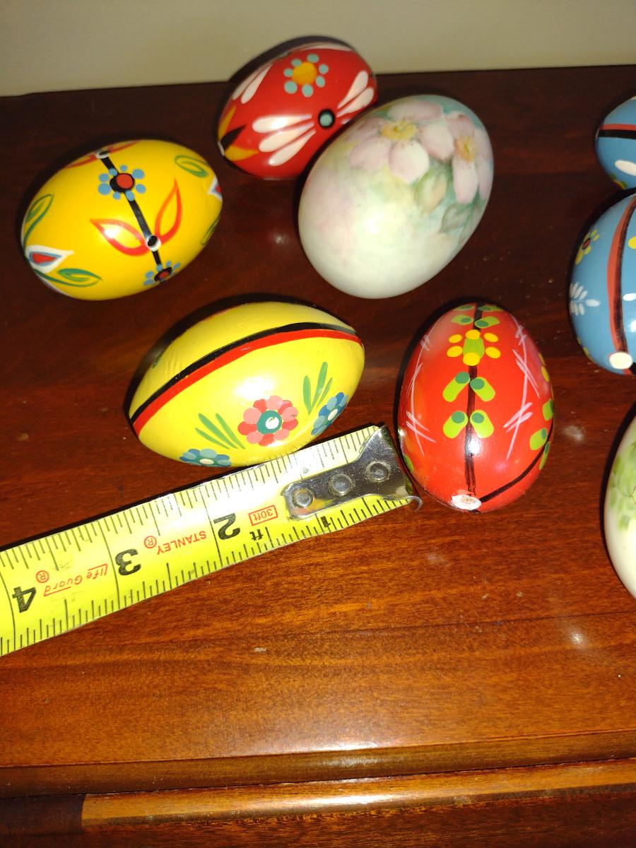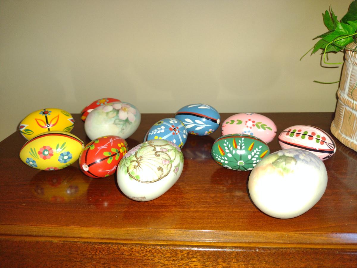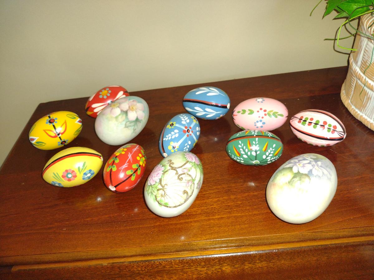 Terra Cotta Basket with Hand Painted Porcelain and Wooden Eggs.