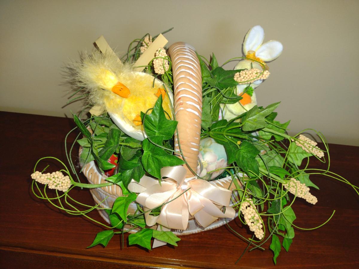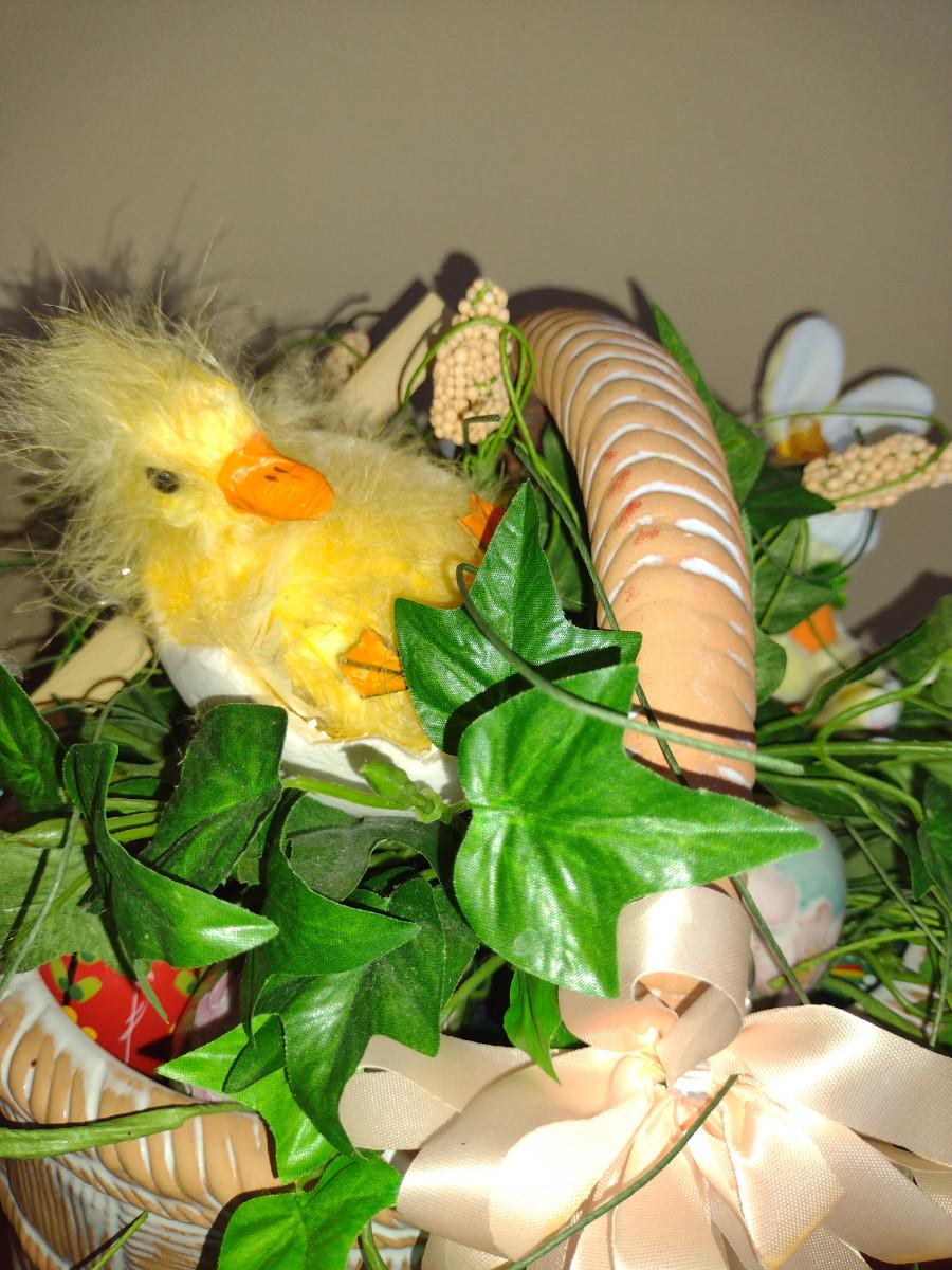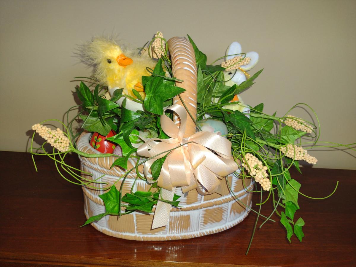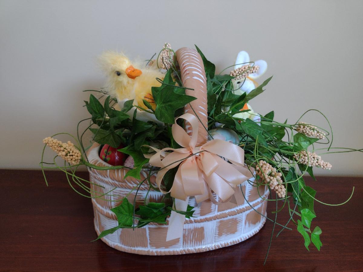 Terra Cotta Basket with Hand Painted Porcelain and Wooden Eggs