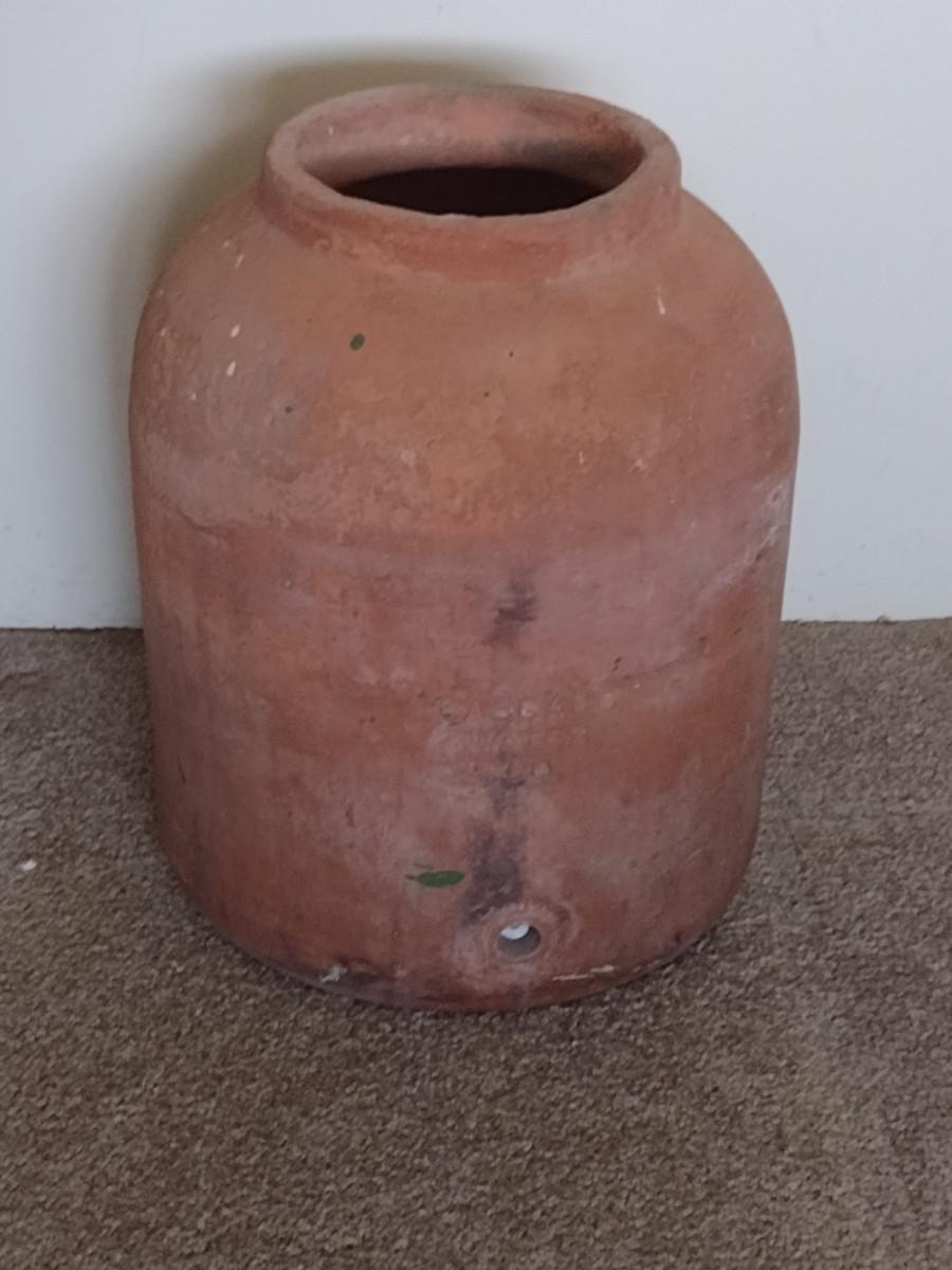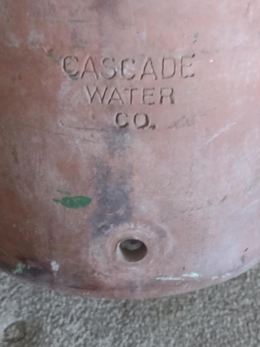 Terra Cotta Cascade Water Co. Water Cooler- Approx 14 3/4" Tall, 10 1/2" in Diameter. No lid or spigot.