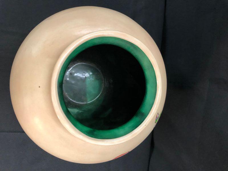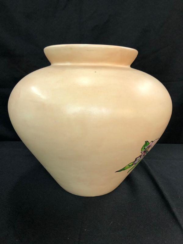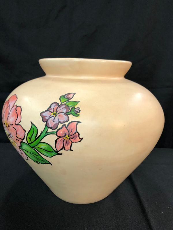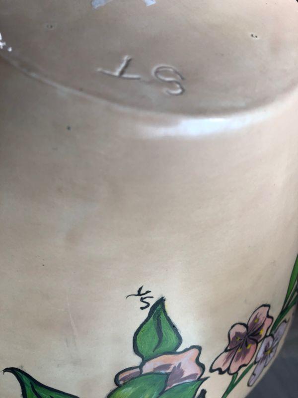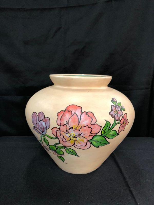 Terra Cotta Pot / Vase, pink and purple flowers signed