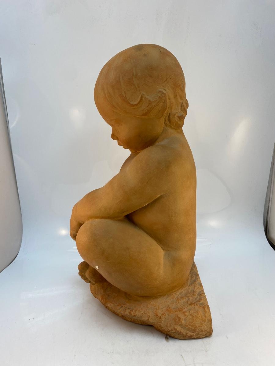 Terra Cotta Pottery Plaster Sitting Child Garden Yard Art Statue