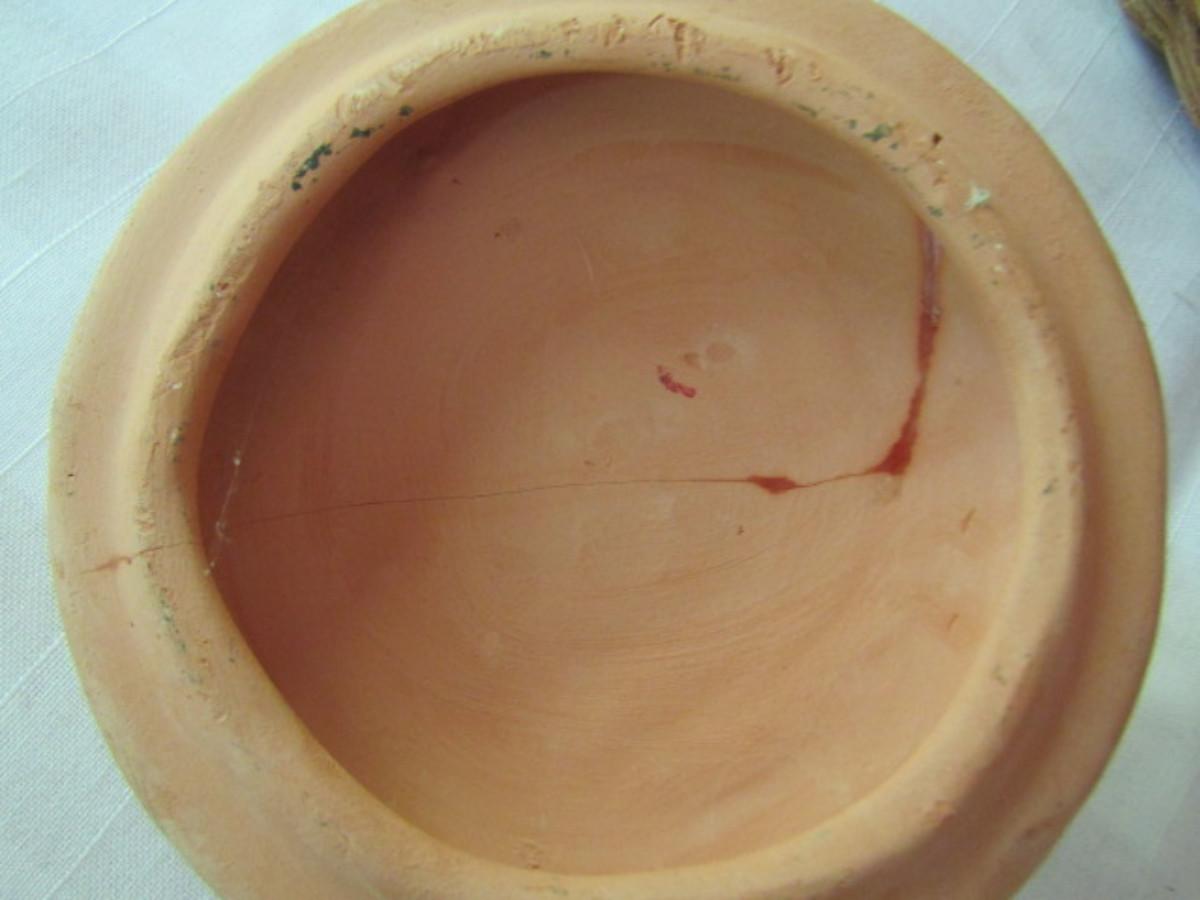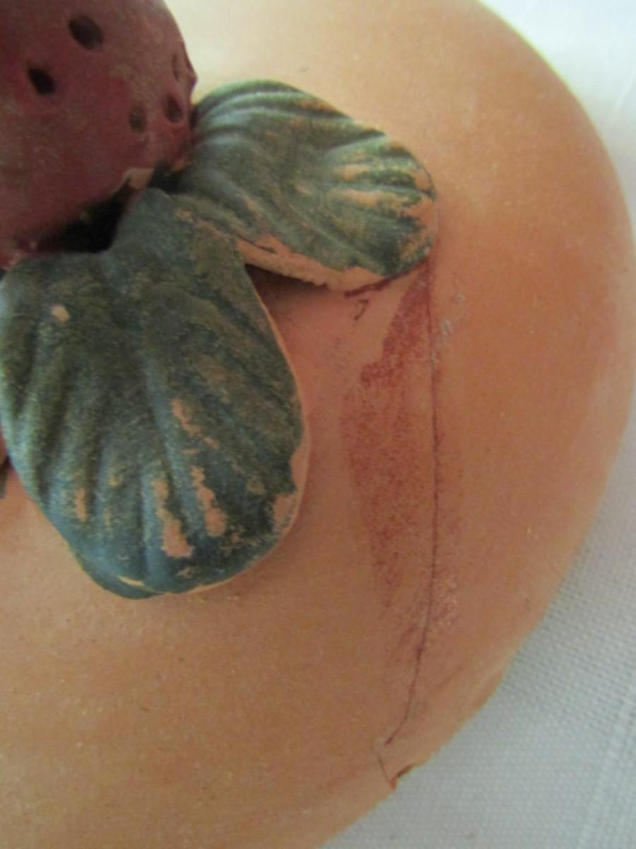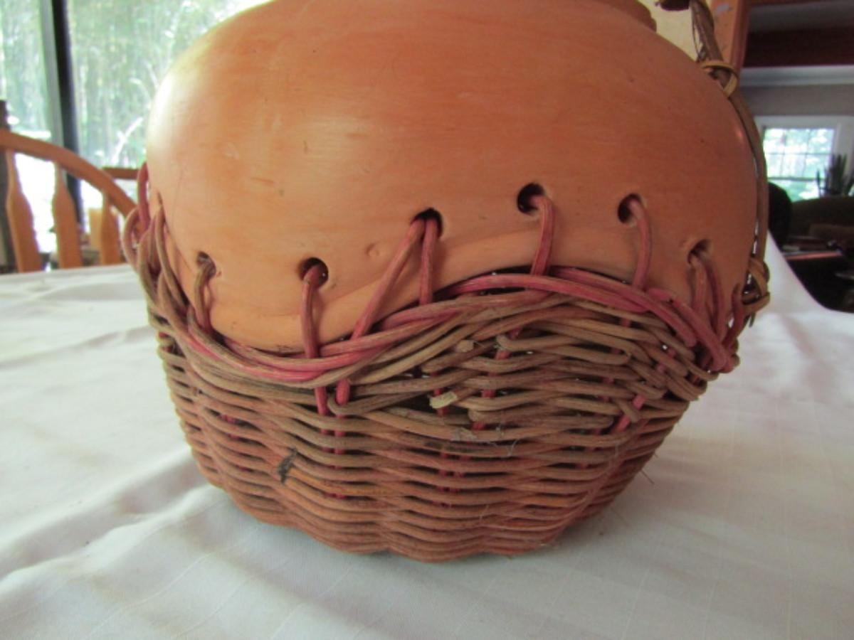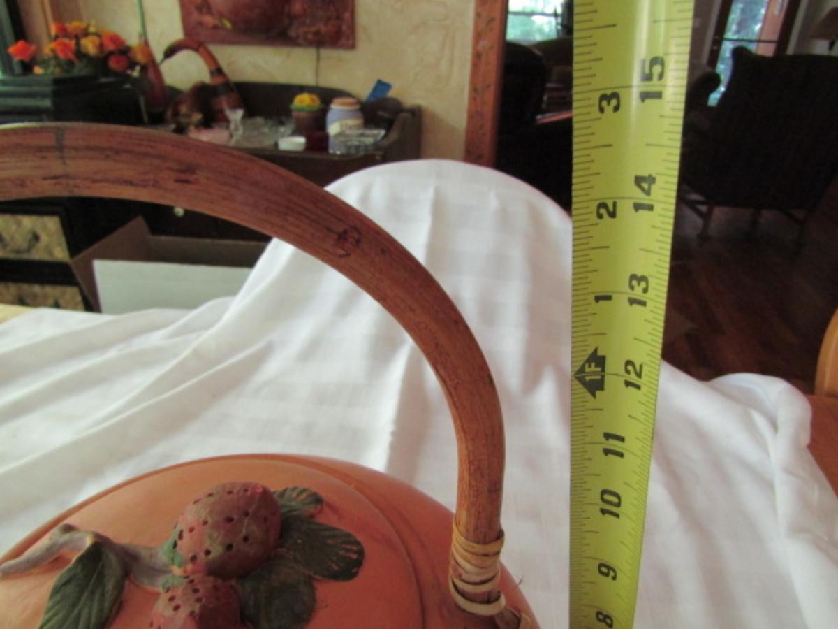 Terra Cotta Topped Basket- Strawberry Theme. Please see all pictures- Lid has been repaired.