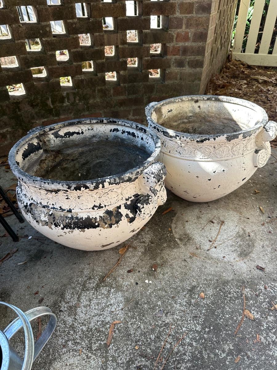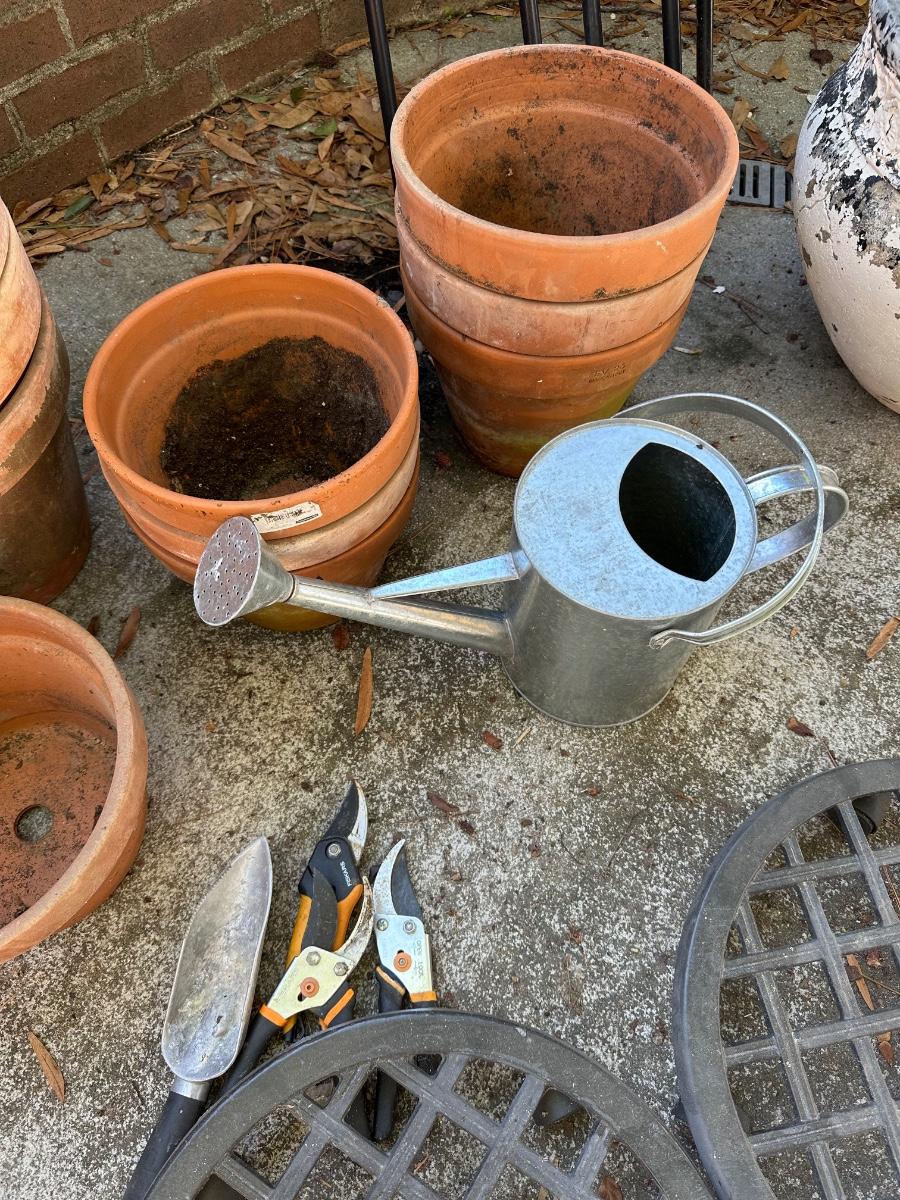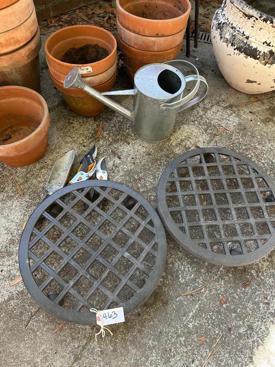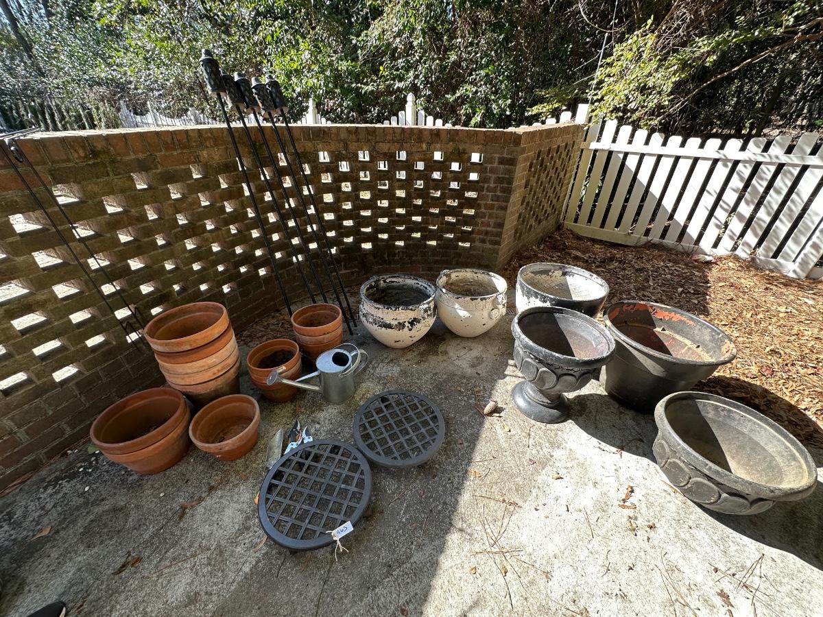 TERRA COTTA, TORCH LIGHT AND PLASTIC PLANTERS AS PICTURED
