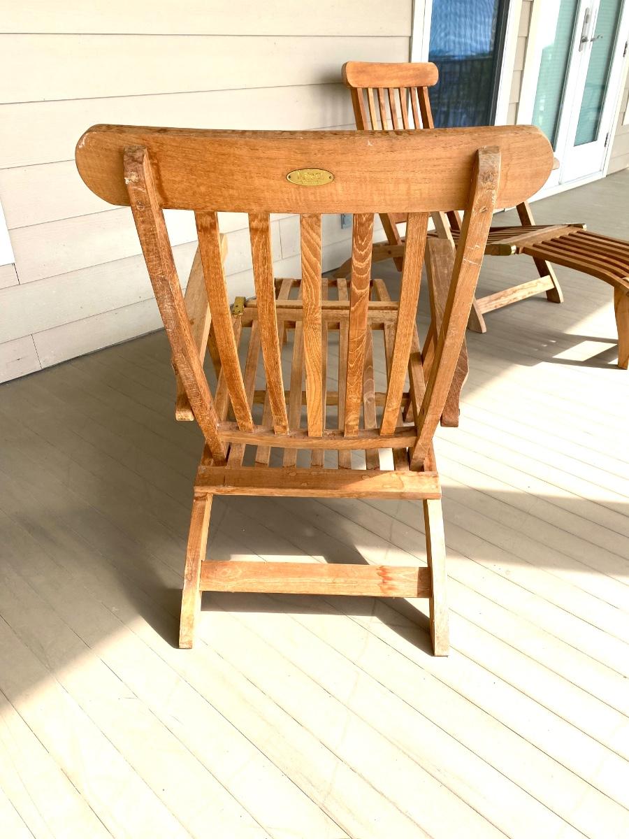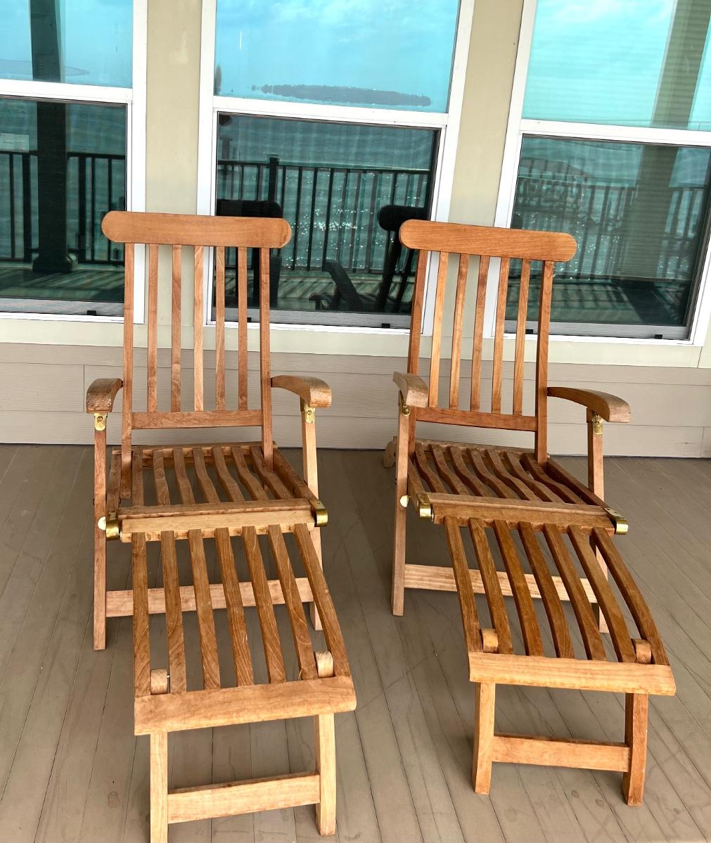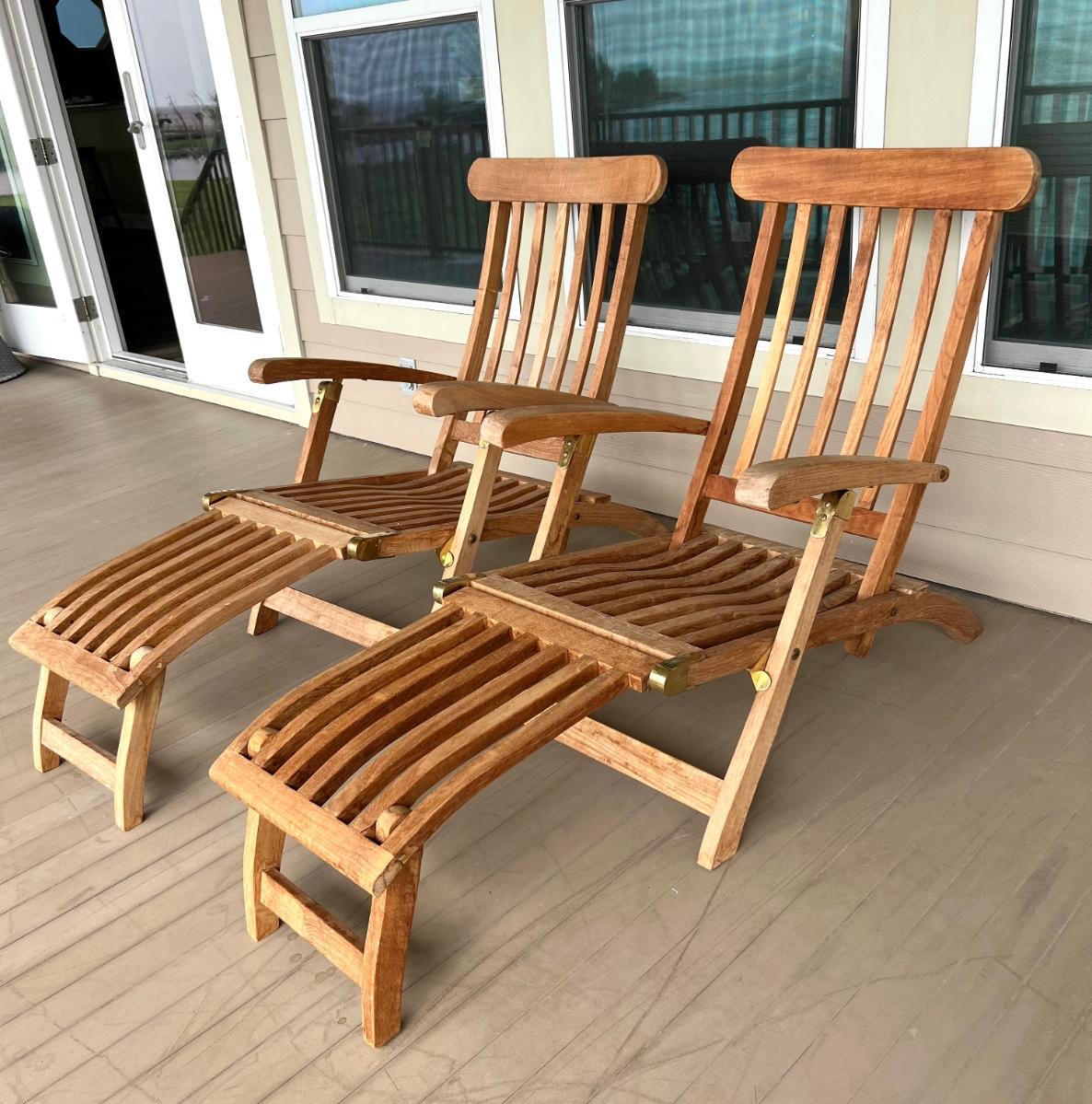 Pair of adjustable outdoor chairs. 37”H X 48”L X 23”W.