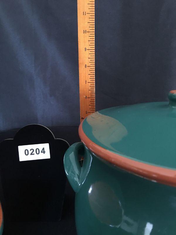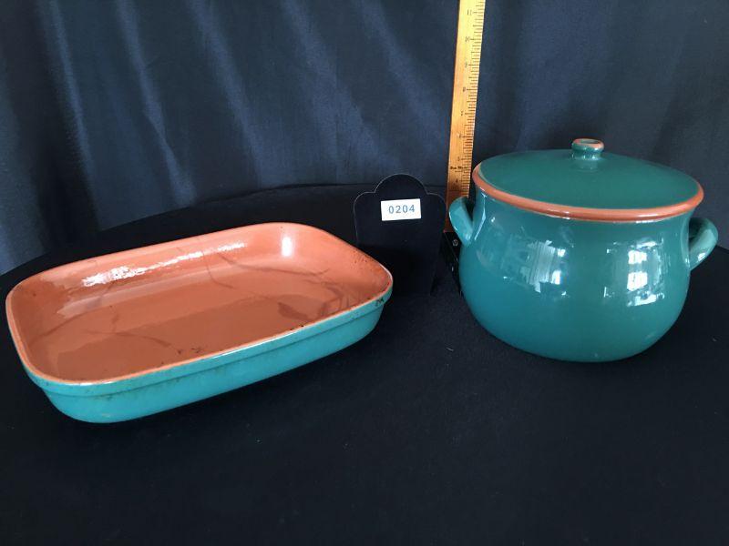 Bean pot w/ lid and 12" x 9" dish - please note cracks do dish, pot is excellent