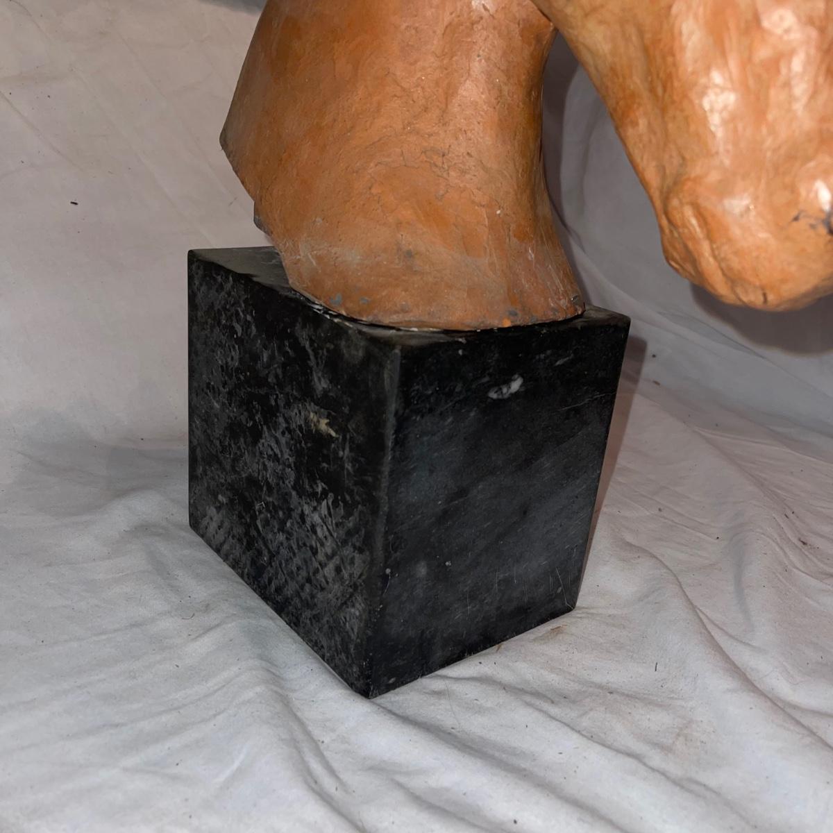 Terracotta Horse Bust with Marble Base (BR-SW)