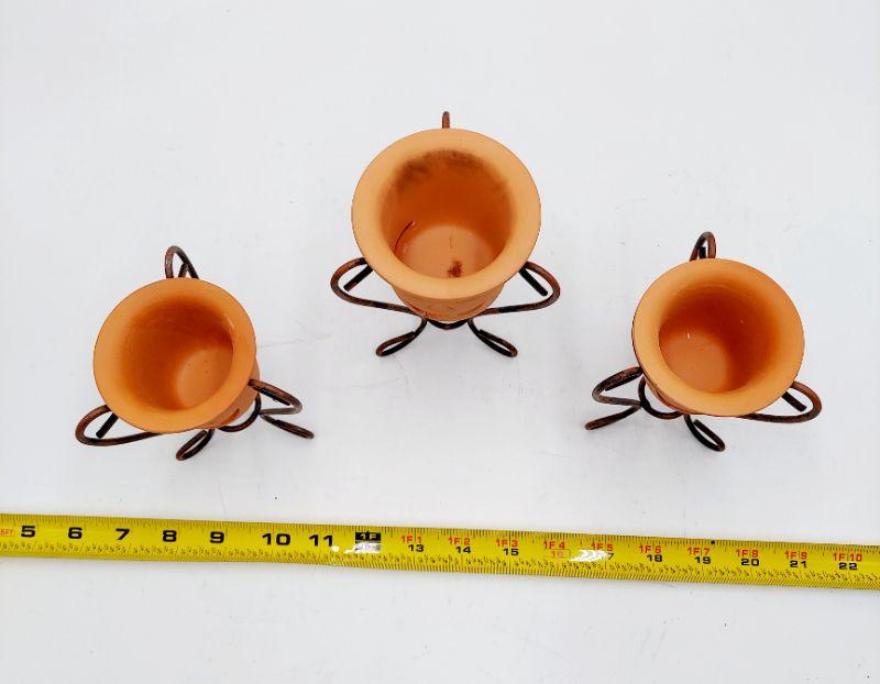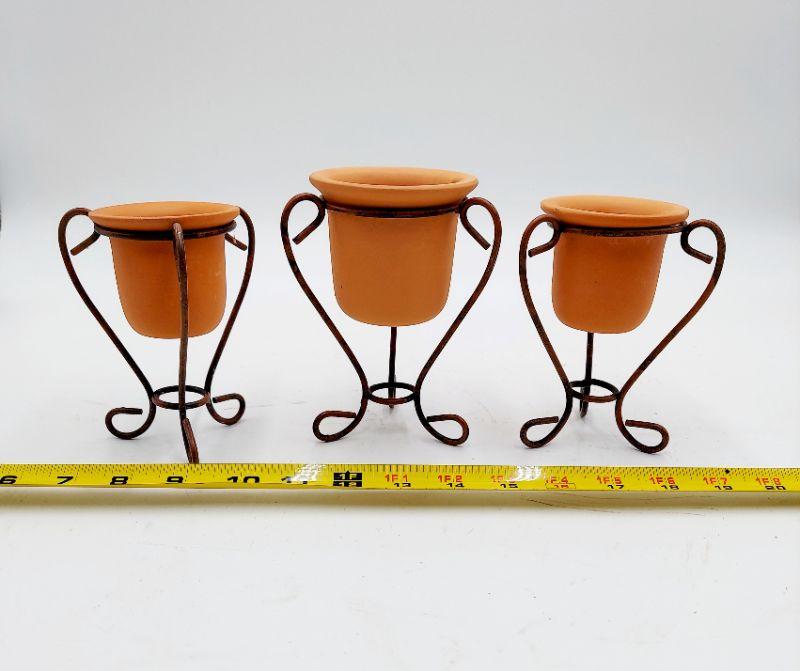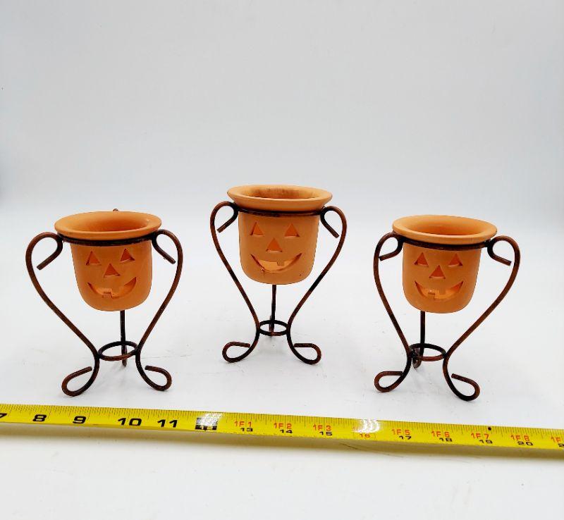 TERRACOTTA PUMPKIN DECOR W/ METAL BASES