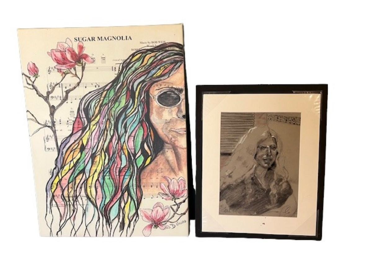One is charcoal on matte, the other is a Sugar Magnolia giclee. Measurement of largest: 24" x 18".