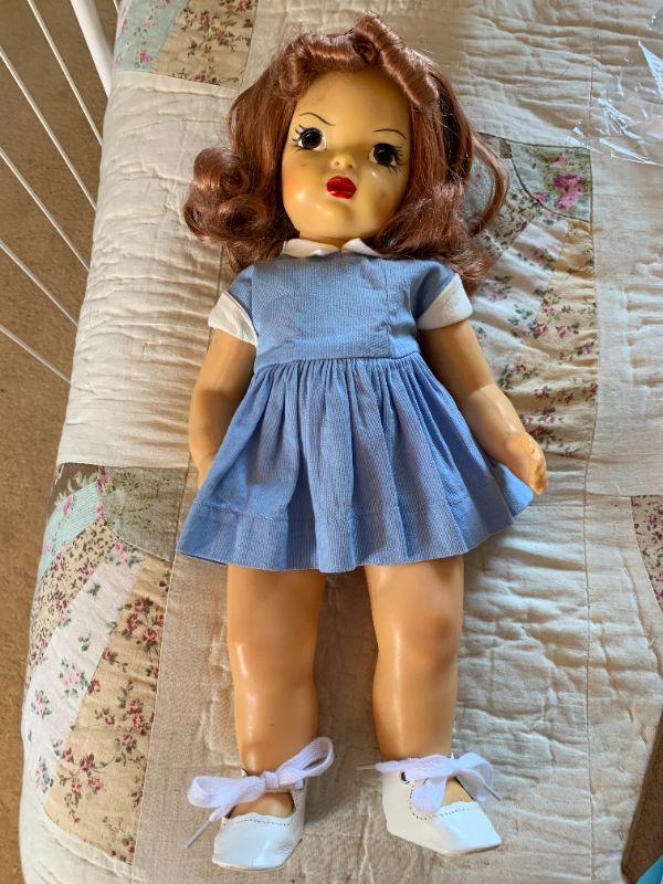 Patent. Pending Light auburn wig Blue dress - original Painted eyes RETAIL APPRISAL: $350