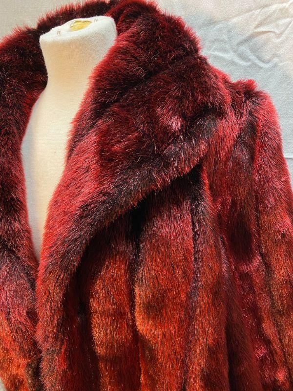 Terry Lewis Classic Luxuries Rusty Red Maroon Faux Fur Coat Size Large YD#020-1220-02099