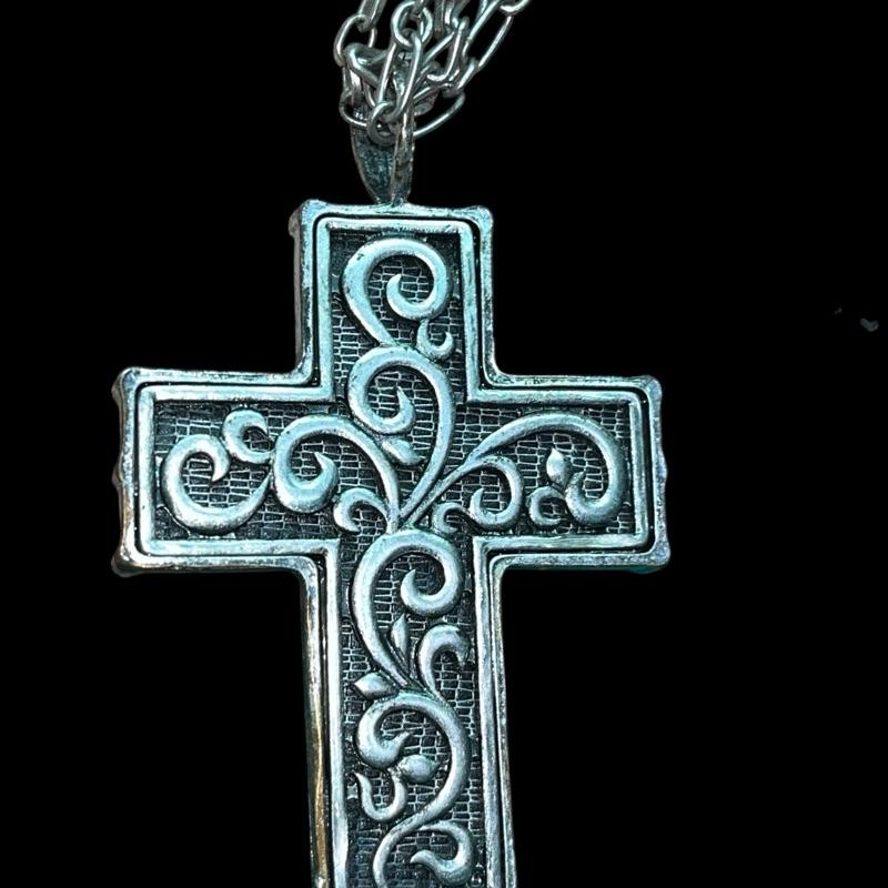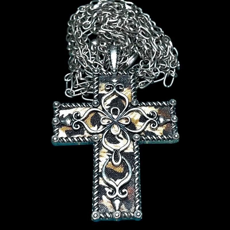 Silver Tone Cross, Tiger / Leopard Print Pendant Necklace