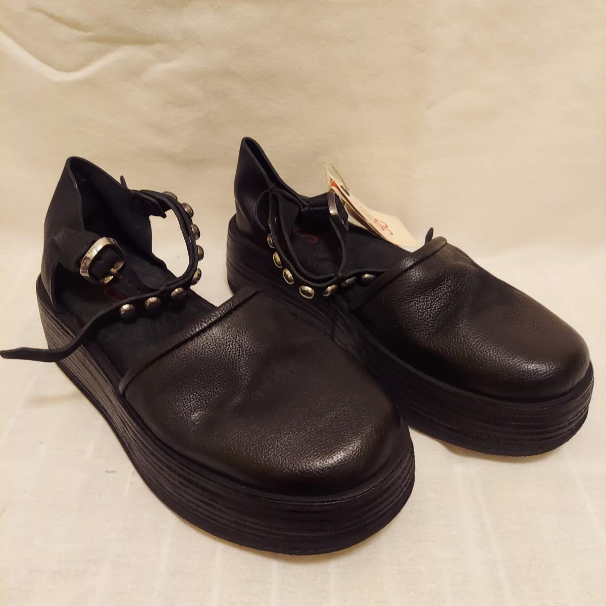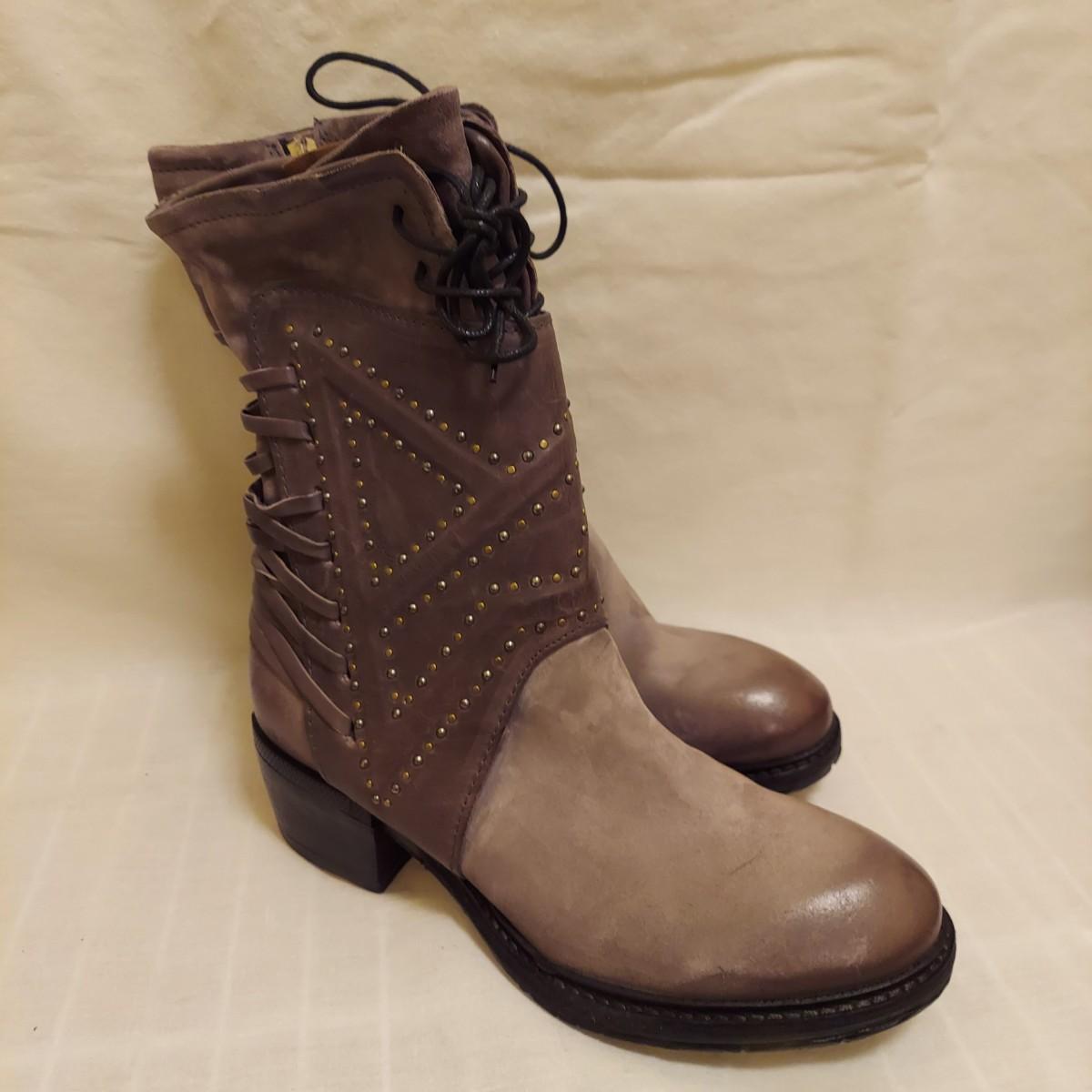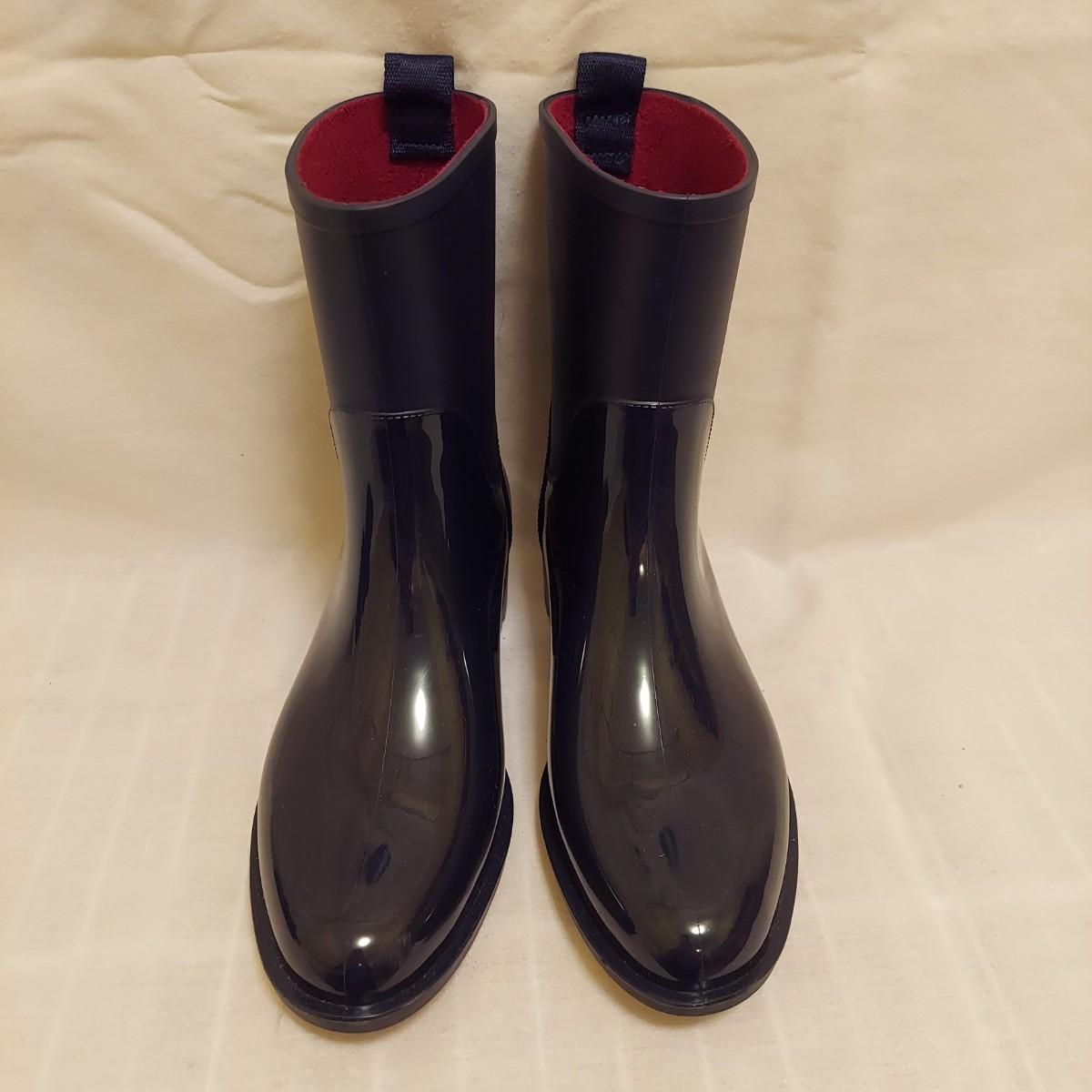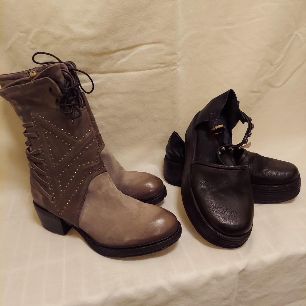 Lot includes five pairs of womens shoes and boots averaging size 7. A.S. 98 grey leather boots with studs. A.S. 98 black leather flatform Mary Jane's with studs. Navy blue Tommy Hilfiger rain boots. Silver and navy Aerosoles flats. Plus Black Wolky slip-ons. Shipping available