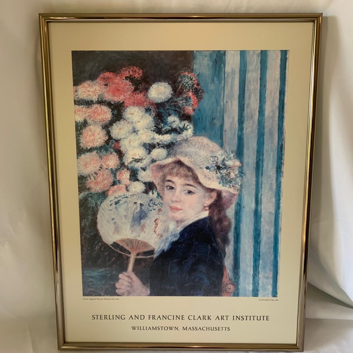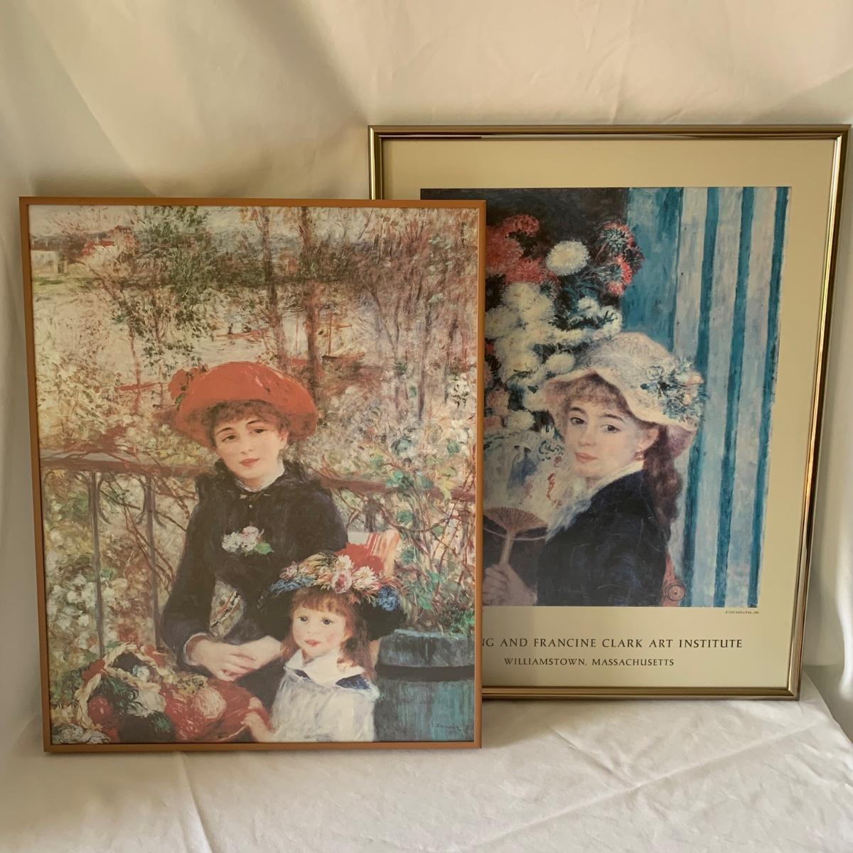 Lot includes framed prints of, “Two Sisters on a Terrace” in metal frame, “A Girl with Fan” in metal frame, and “The Skiff” in painted vinyl frame. Largest print measures, 29.5” x 24.5”.