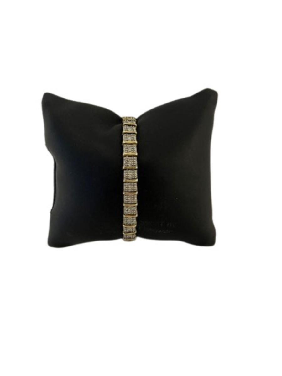 **WIRE TRANSFER IS REQUIRED IF SHIPPED.** [8.92g] Stones test moissanite. There are six stones per link. Measurement: 7"L. Gold content confirmed using Niton XRF precious metals analyzer. Stones tested using Gemoro Ultra Tester. [ST]