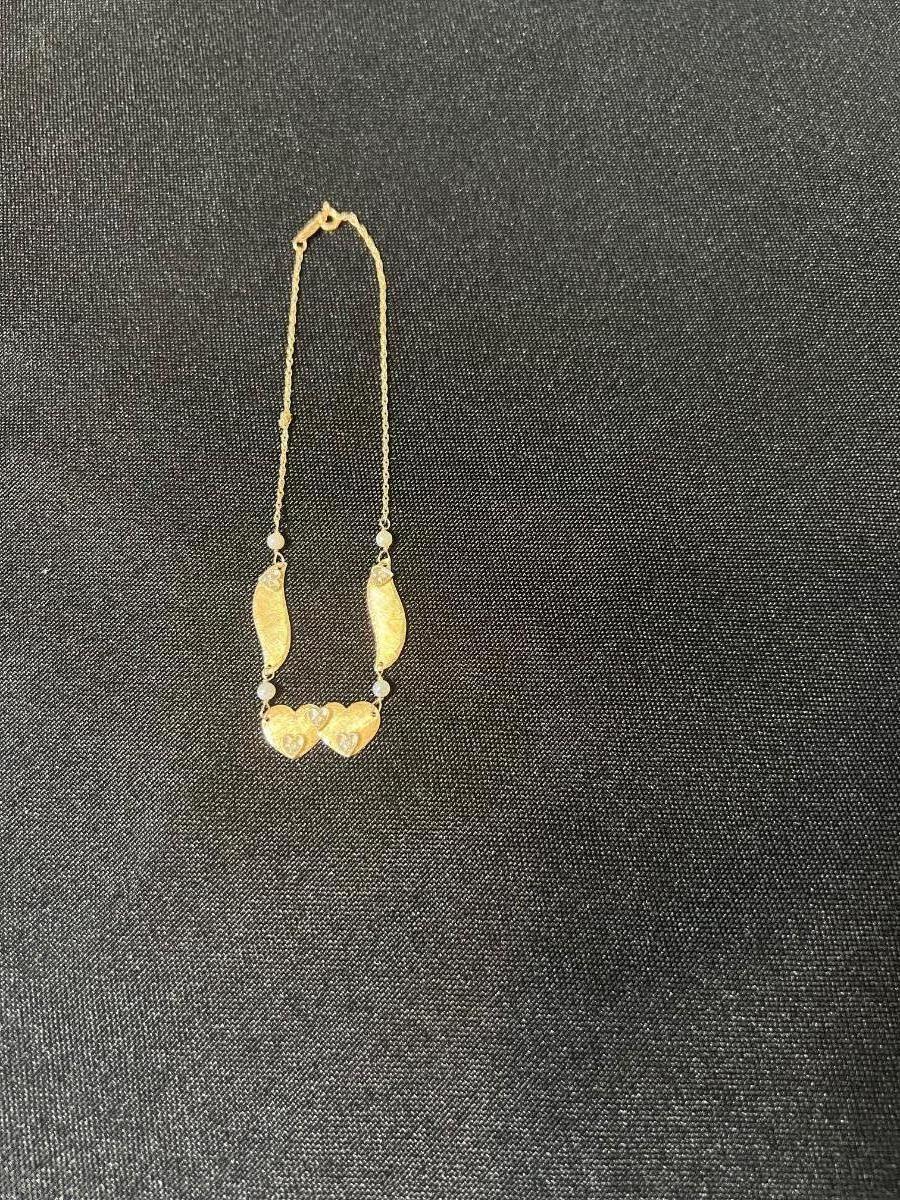 **WIRE TRANSFER IS REQUIRED IF SHIPPED.** [1.97g] This piece has pearls, leaves, hearts, and possibly diamond flecks. Gold content confirmed using Niton XRF precious metals analyzer.