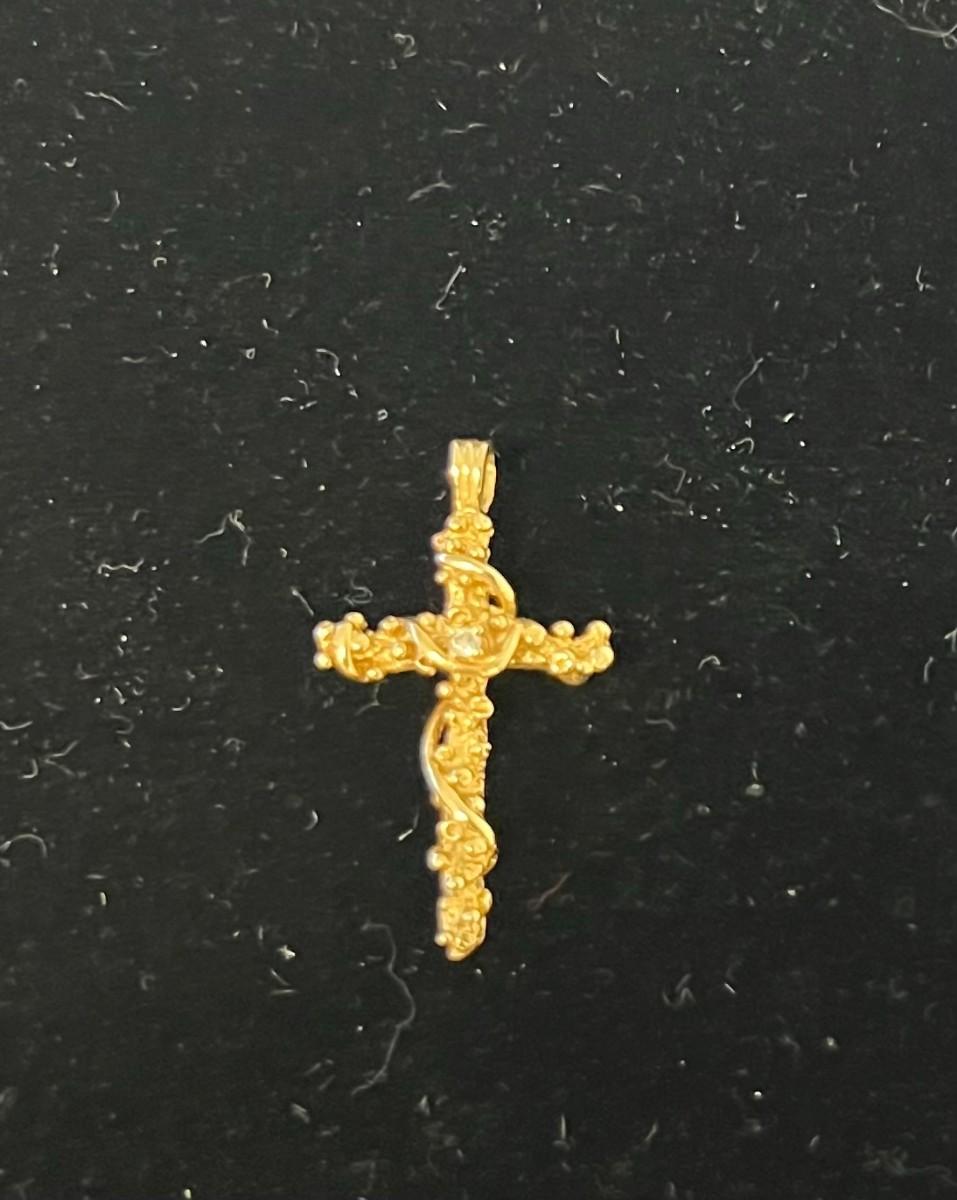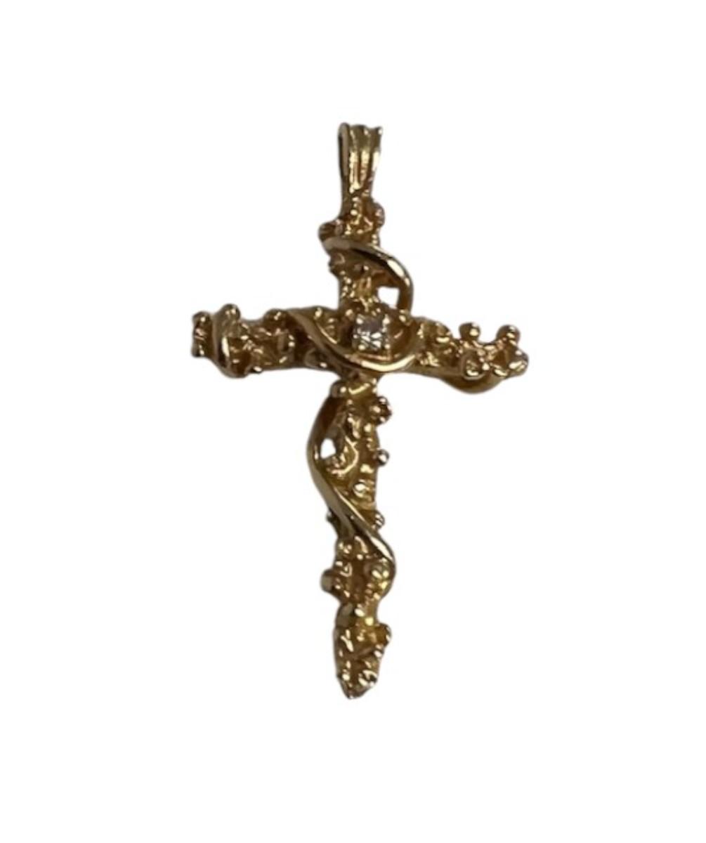 Tested 14K Gold and Diamond Cross Pendant [2.06g]