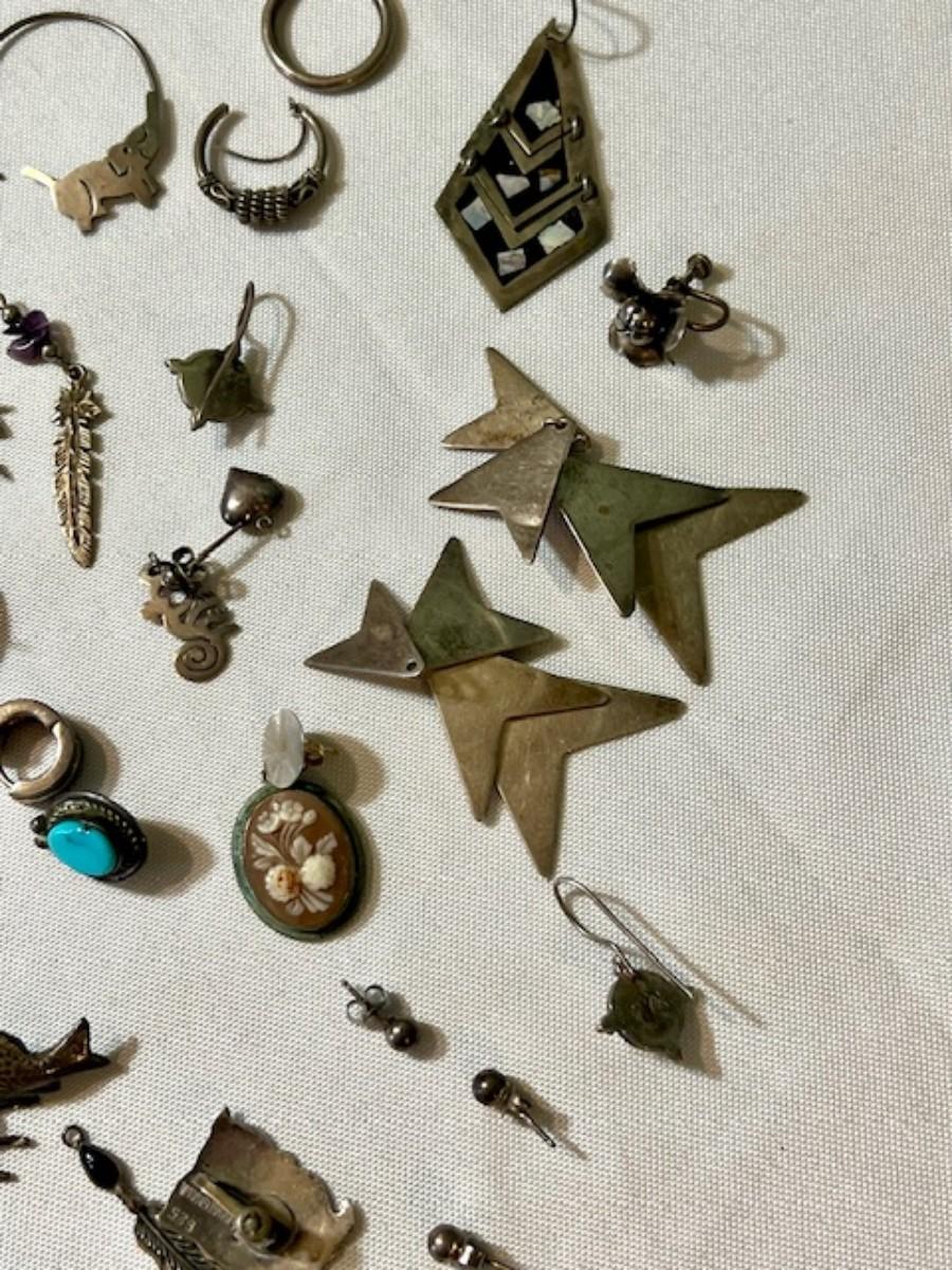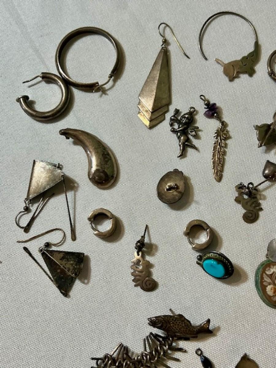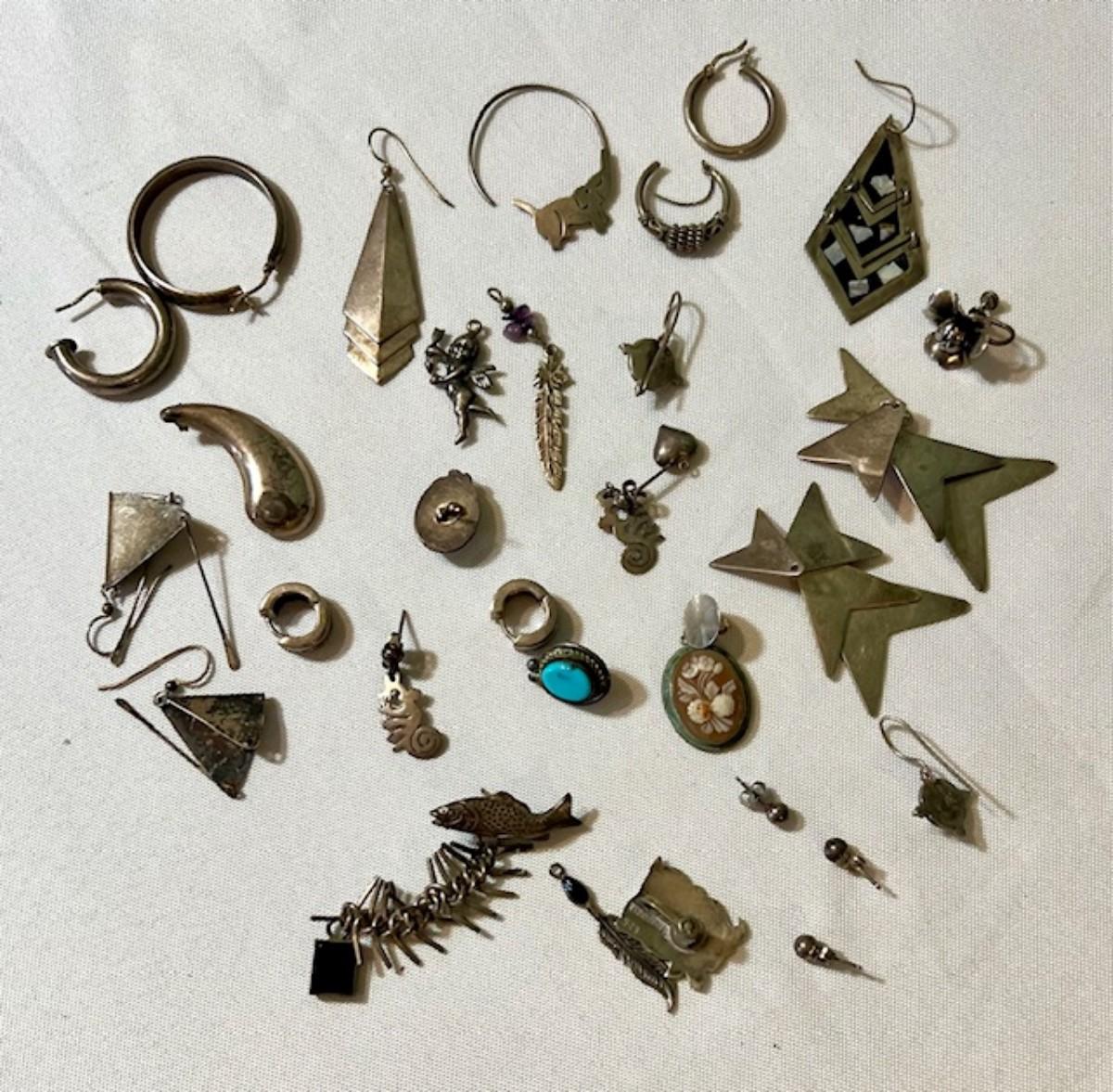 **WIRE TRANSFER IS REQUIRED IF SHIPPED.** [79.66g] Mostly earrings. Includes 31 pieces. Silver content confirmed using Niton XRF precious metals analyzer.