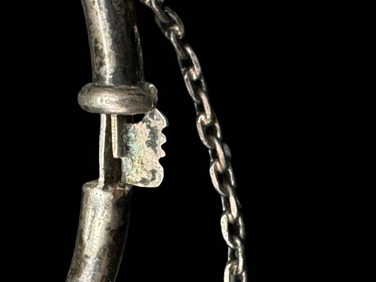 [6.45g] The hinge and closure both work as they should, and the safety chain is intact. Measurement: 2.25”W. Silver content confirmed using Niton XRF precious metals analyzer. [BK]