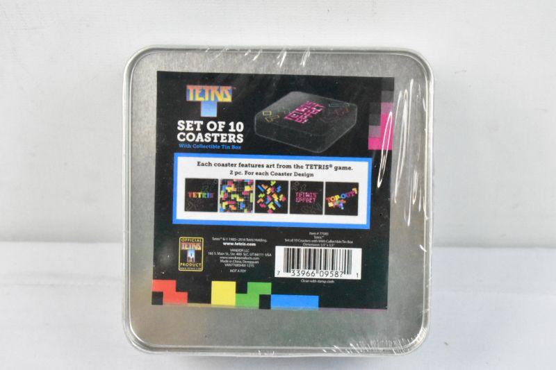 Tetris Coaster Set. Set of 10 with Tin Box - New