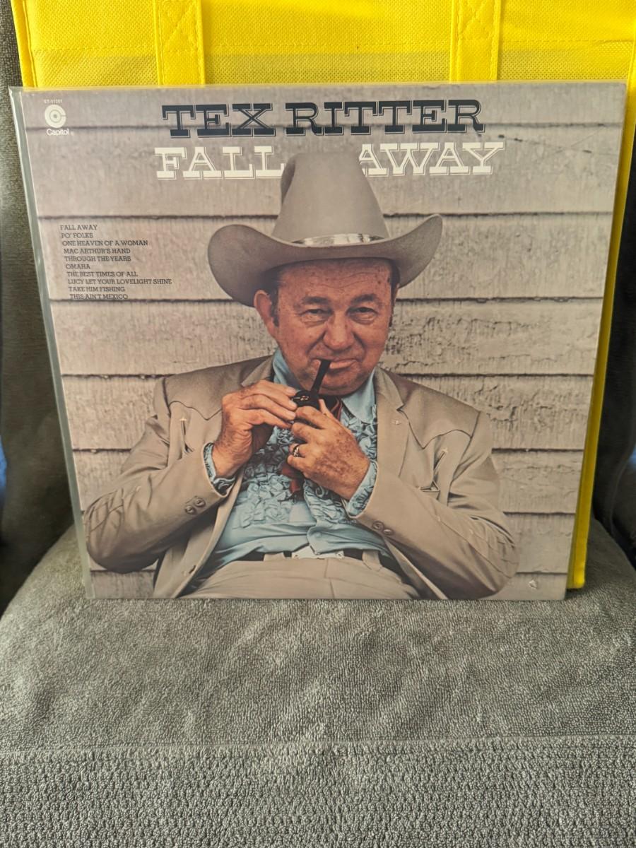 "Fall Away" vinyl LP album by Tex Ritter, a renowned American country music singer and actor.