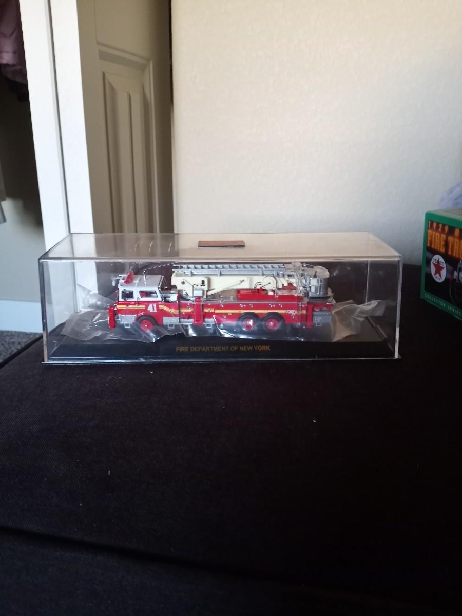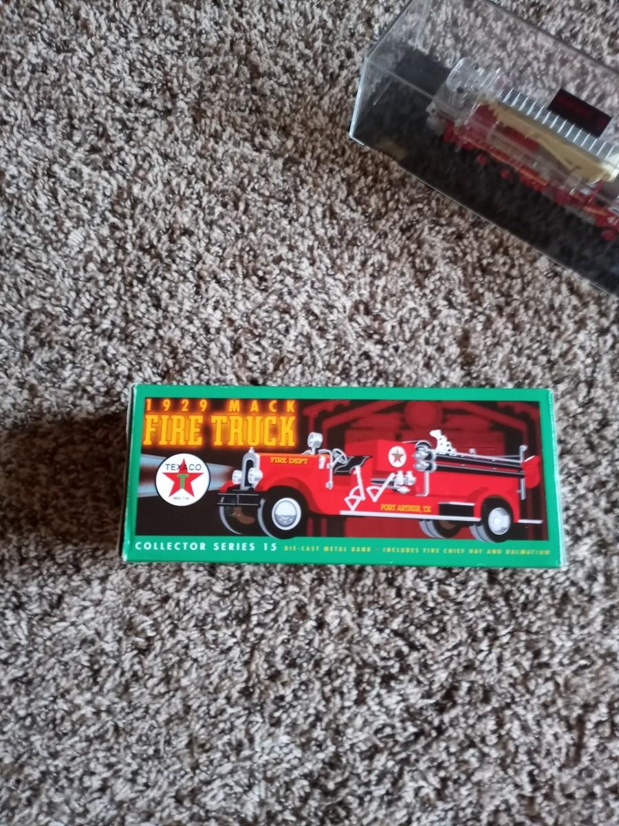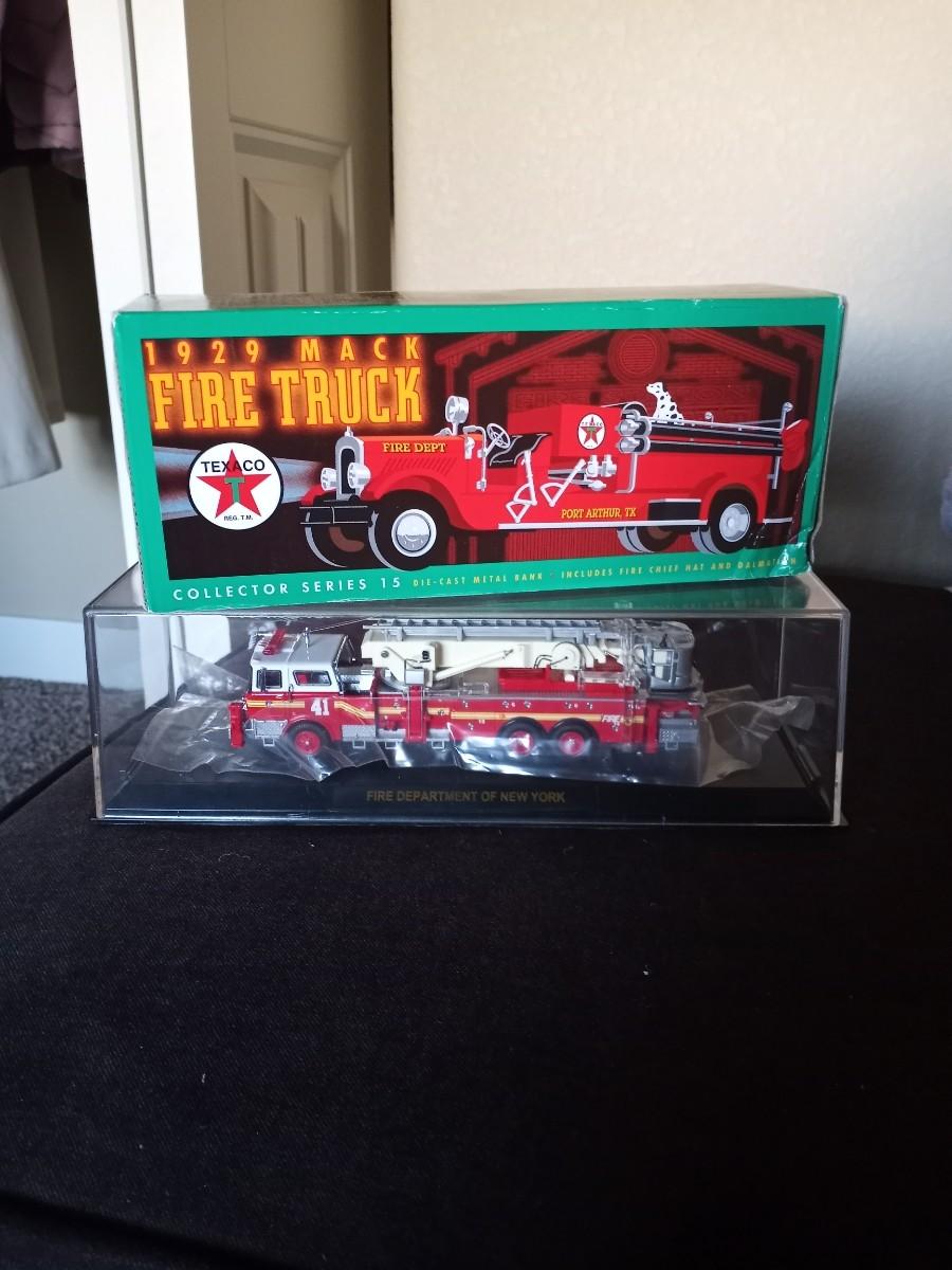 TEXACO 1920 MACK FIRE TRUCK IN BOX AND NEW YORK FIRE TRUCK #41 IN PLASTIC DISPLAY CASE