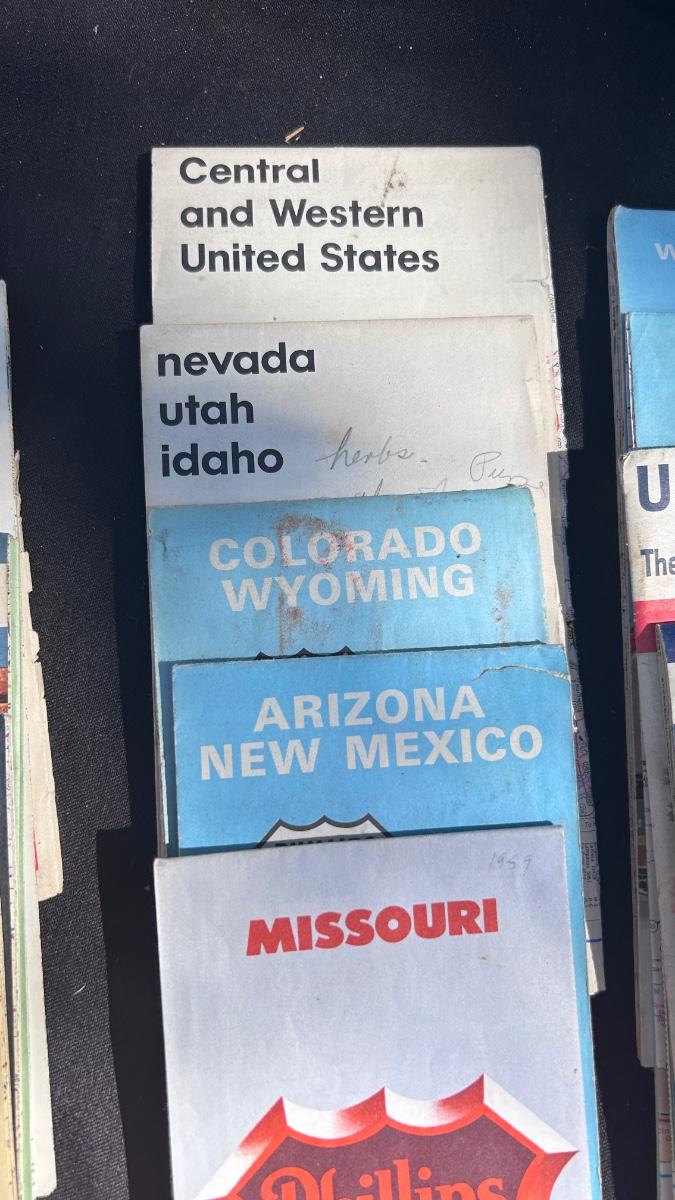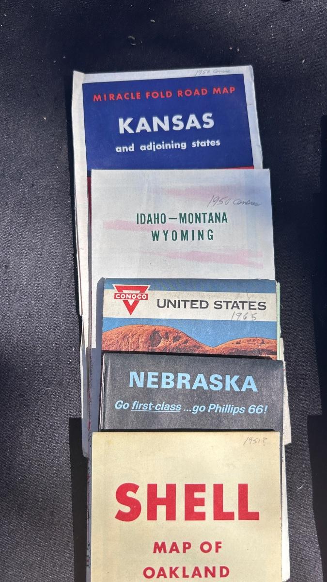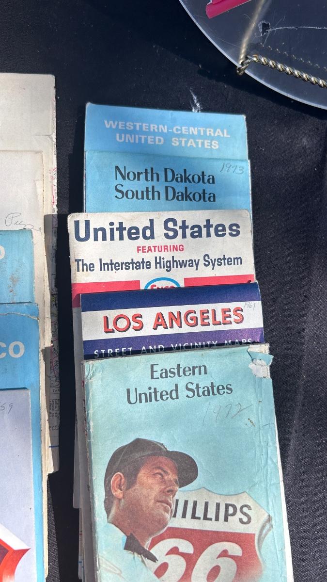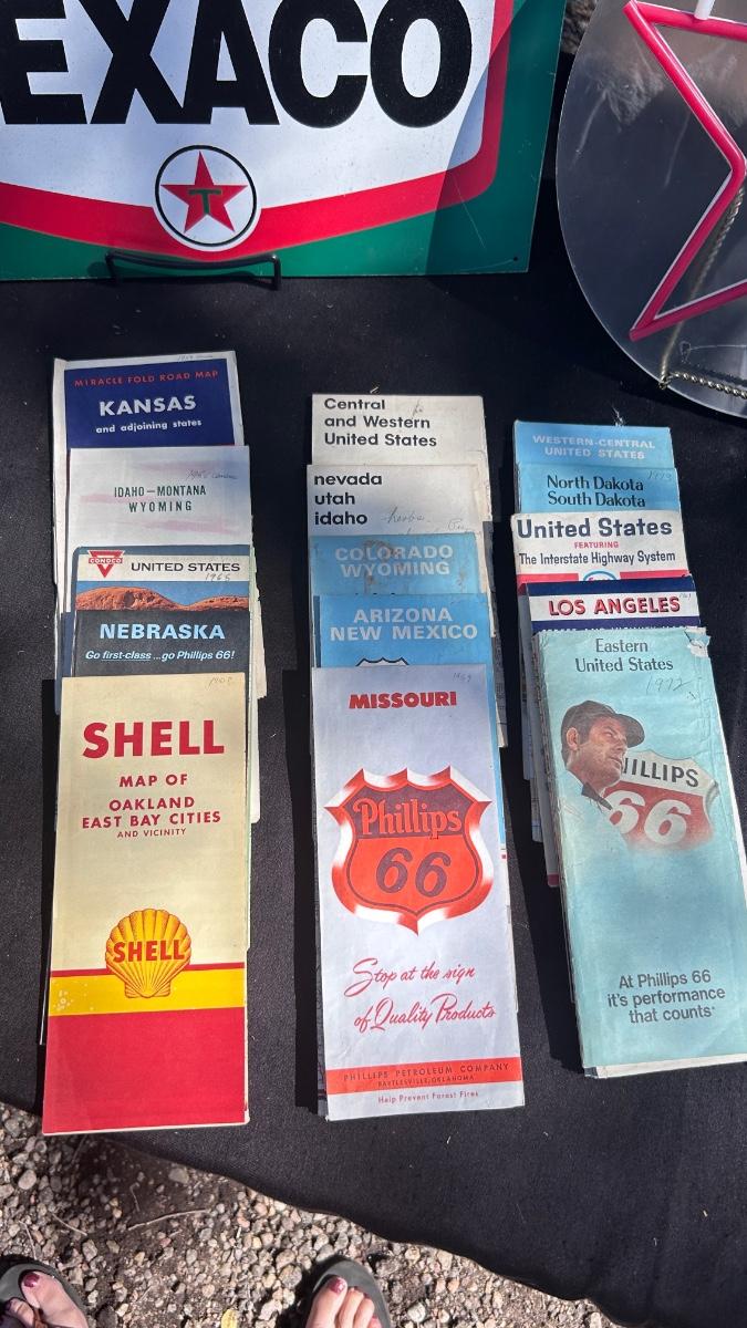 TEXACO SIGN, LED LIGHT AND VINTAGE ROAD MAPS
