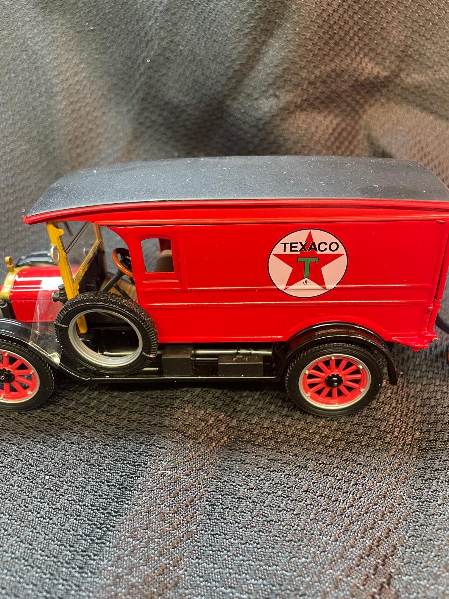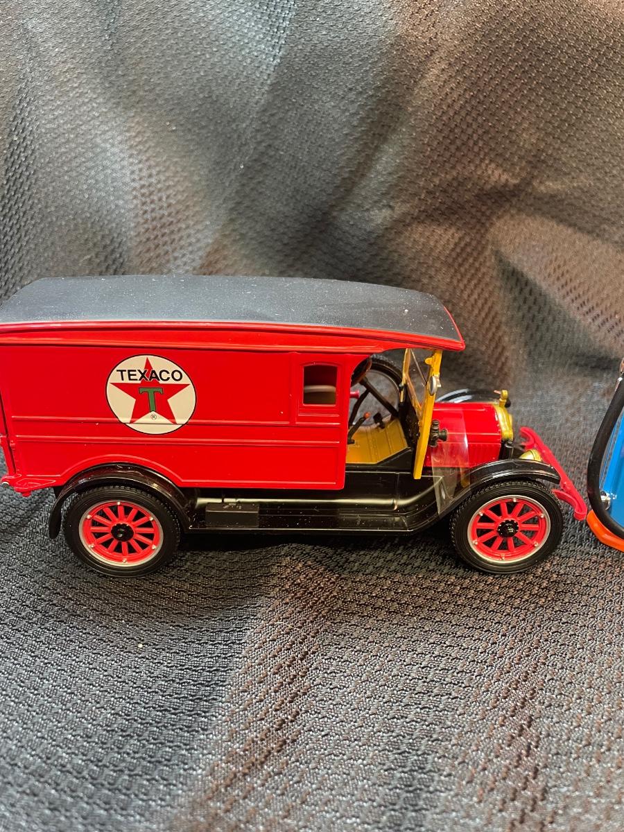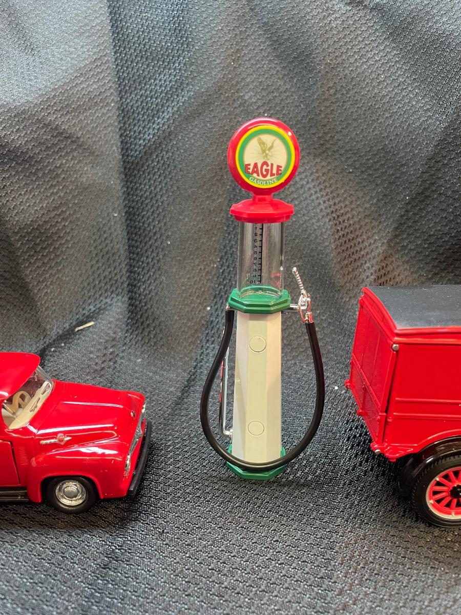 Texaco trucks and Chevrolet, Ford and Eagle gas pumps