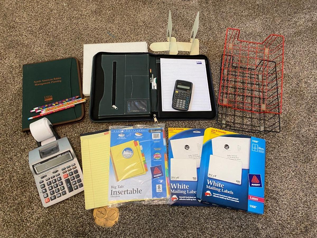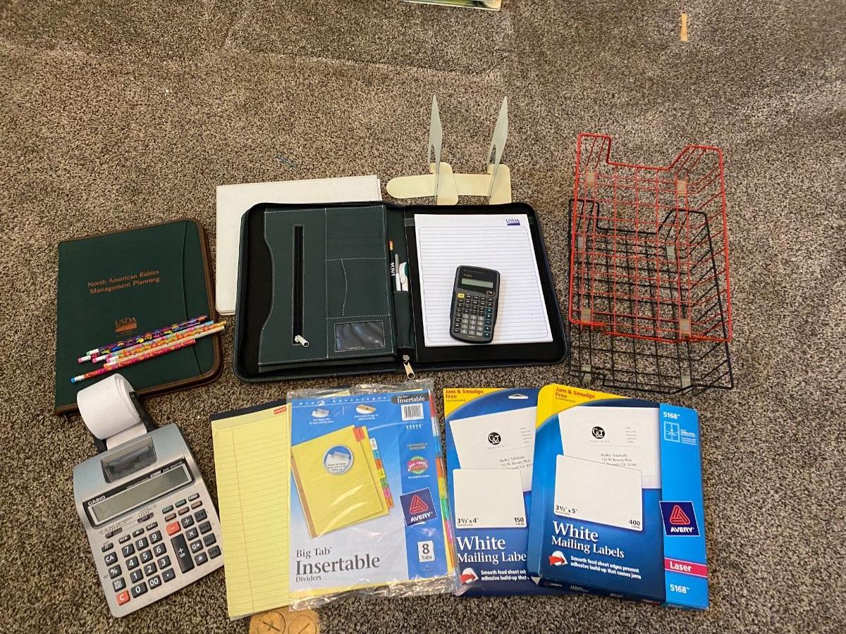 TEXAS INSTRUMENTS SCIENTIFIC CALCULATOR, DESK TOP CALCULATOR, AVERY LABELS AND OTHER NEEDFUL OFFICE SUPPLIES