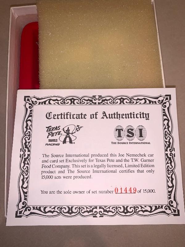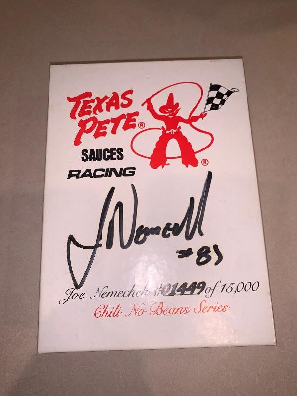 Texas Pete Joe Nemechek signed car. Comes with certificate of authenticity!