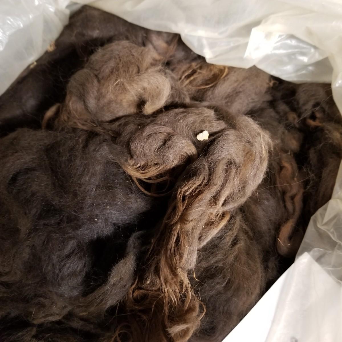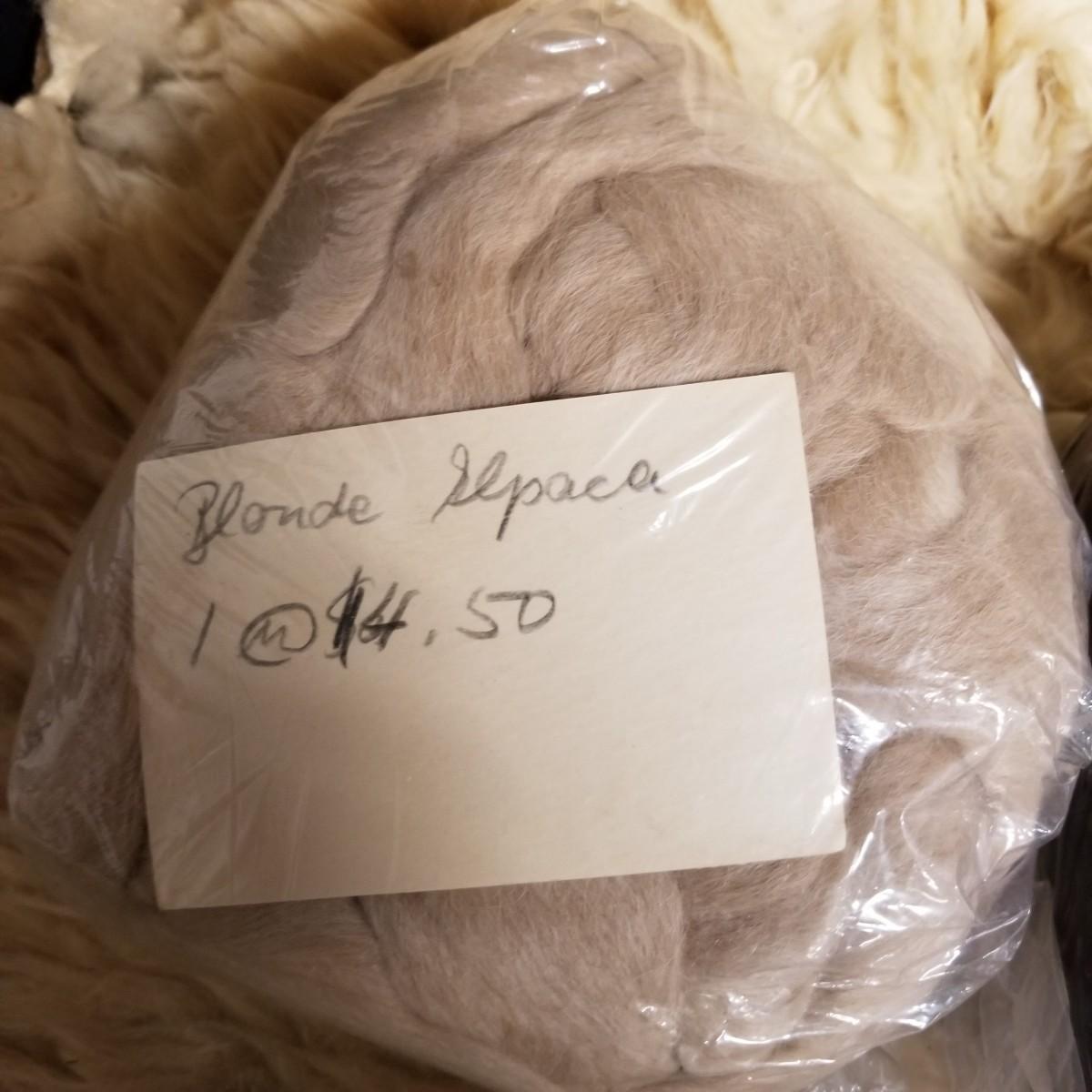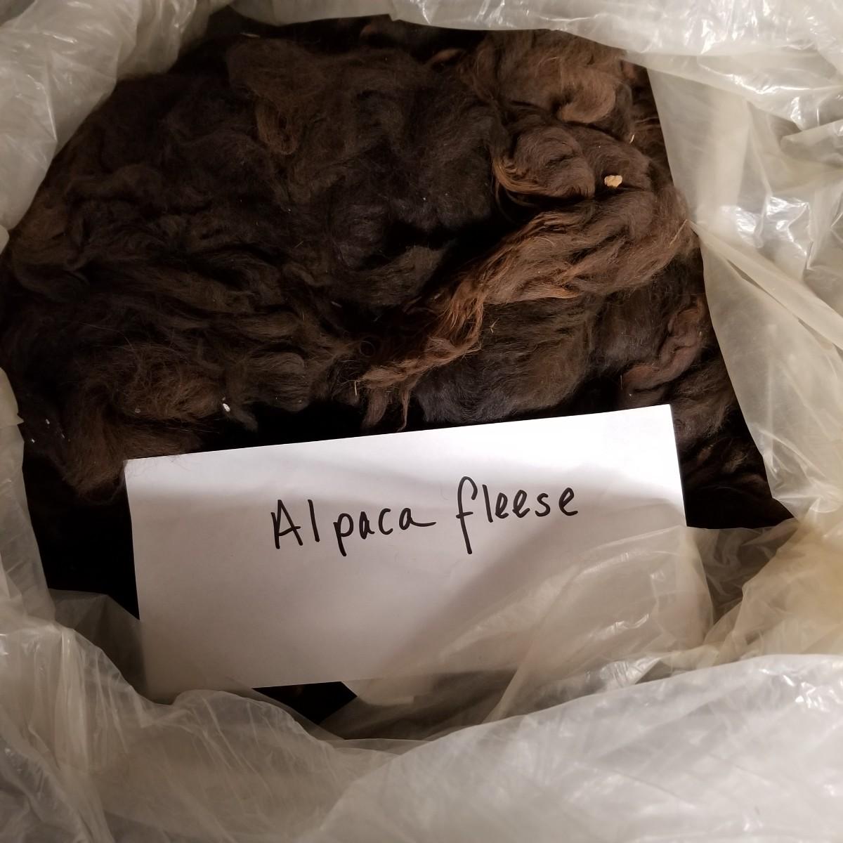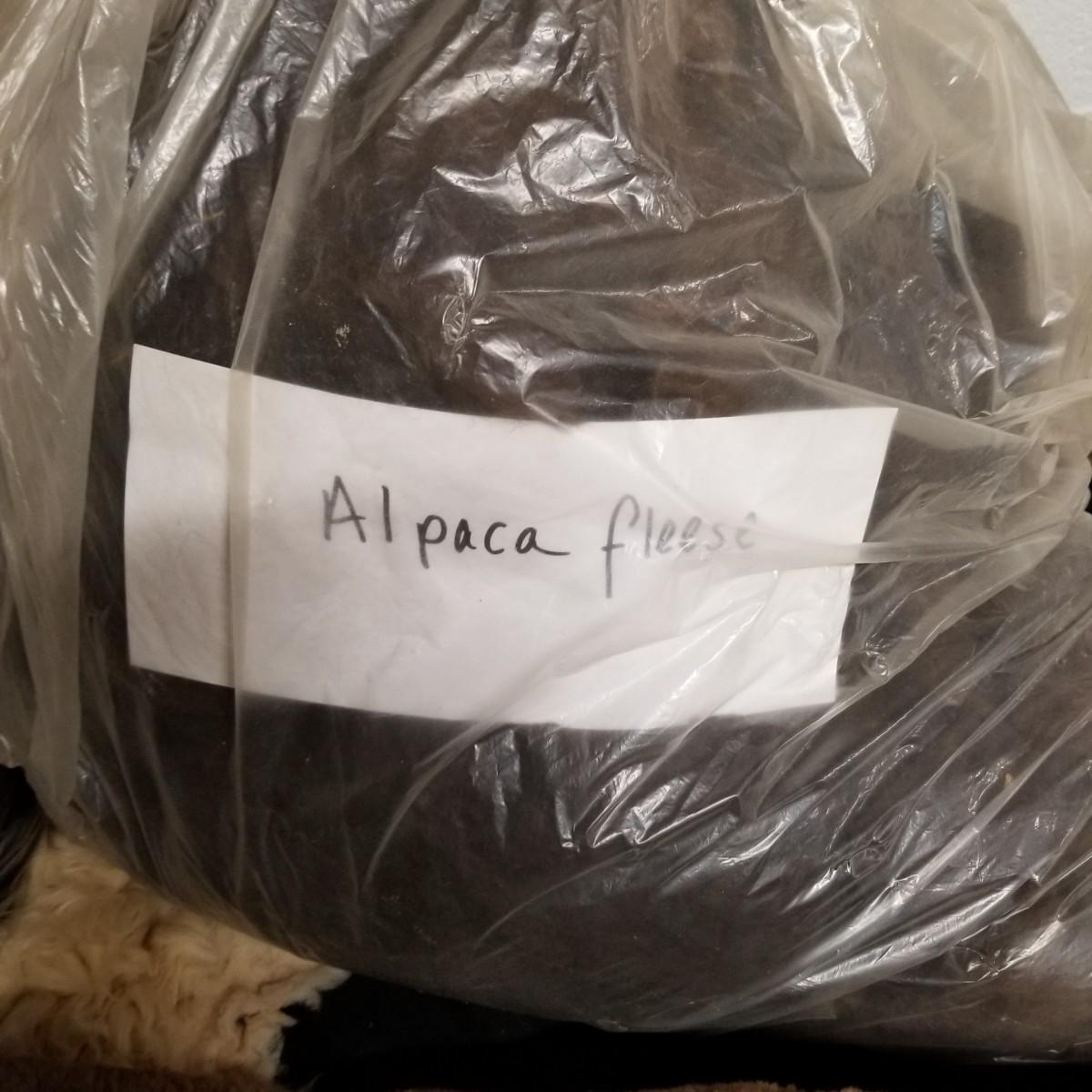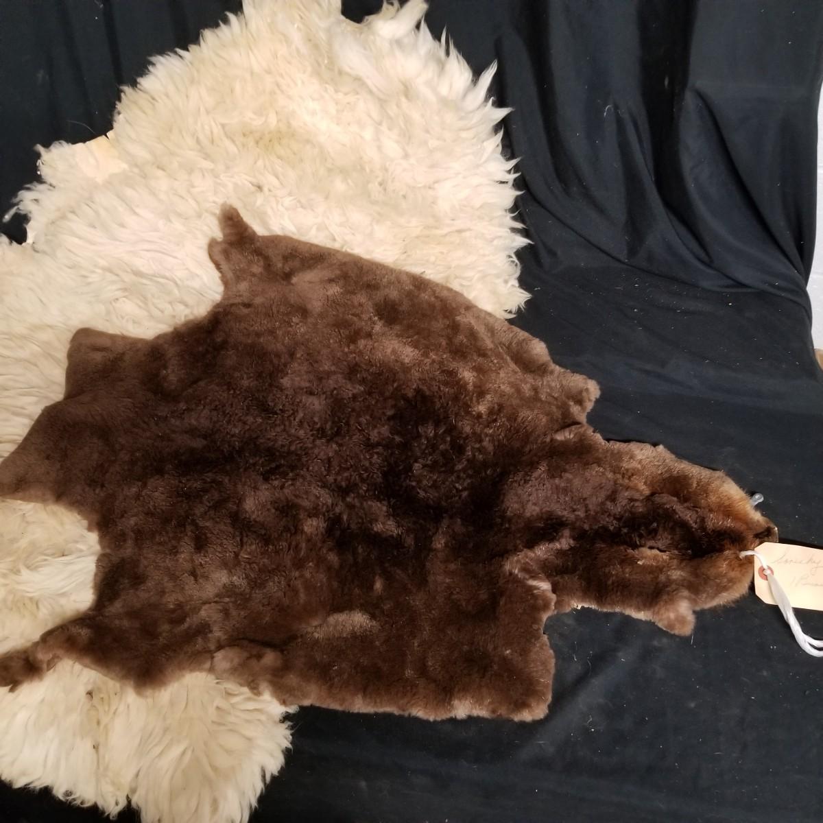 A mixture of textile items.  One full raw alpaca fleece, @ 5-7lb, one sheepskin rug, measures 43"x28". Three bags of alpaca yarn, @ one pound each, and one item that is marked as a beaver pelt which is 32"x23". See photos for details. Local pick up only