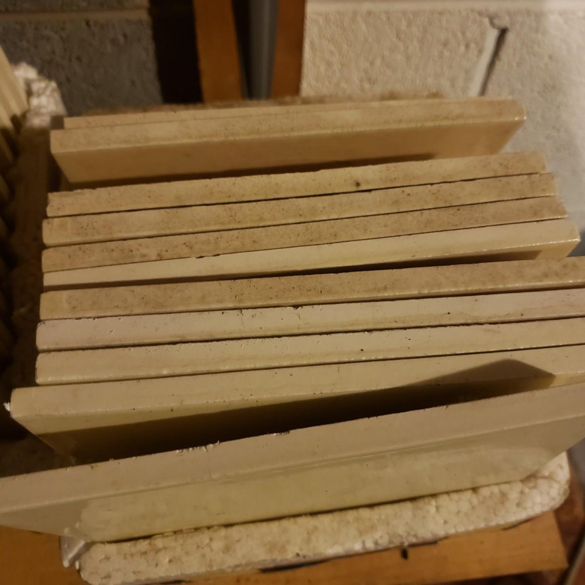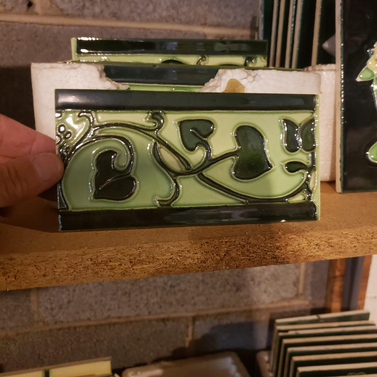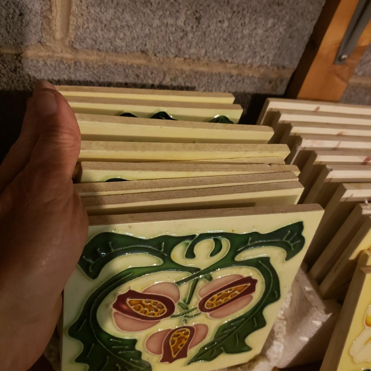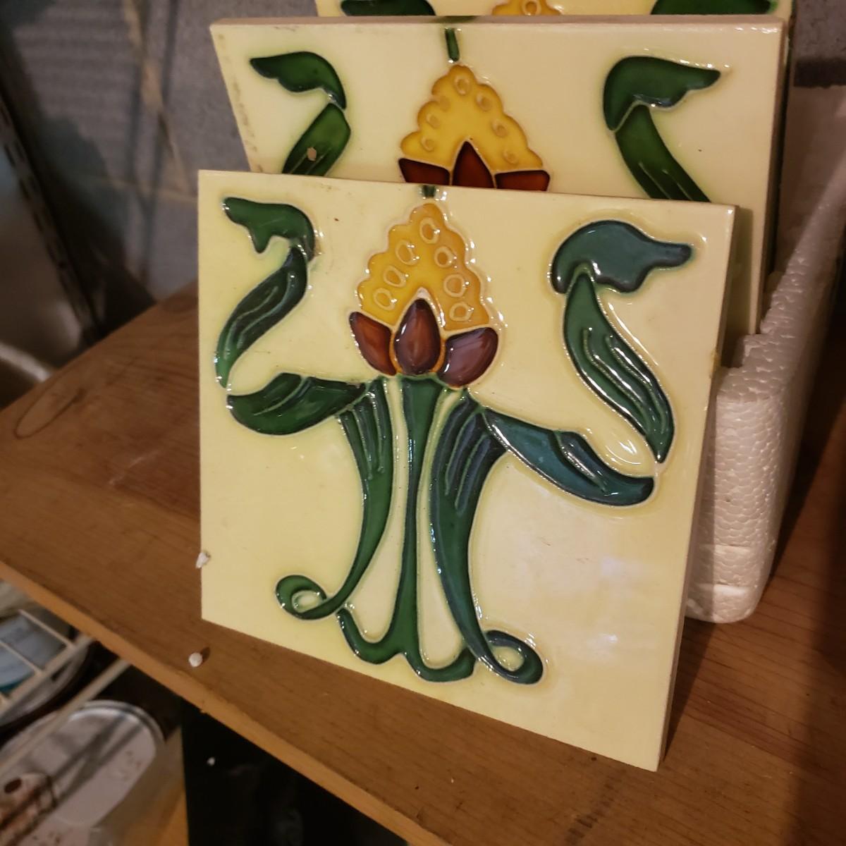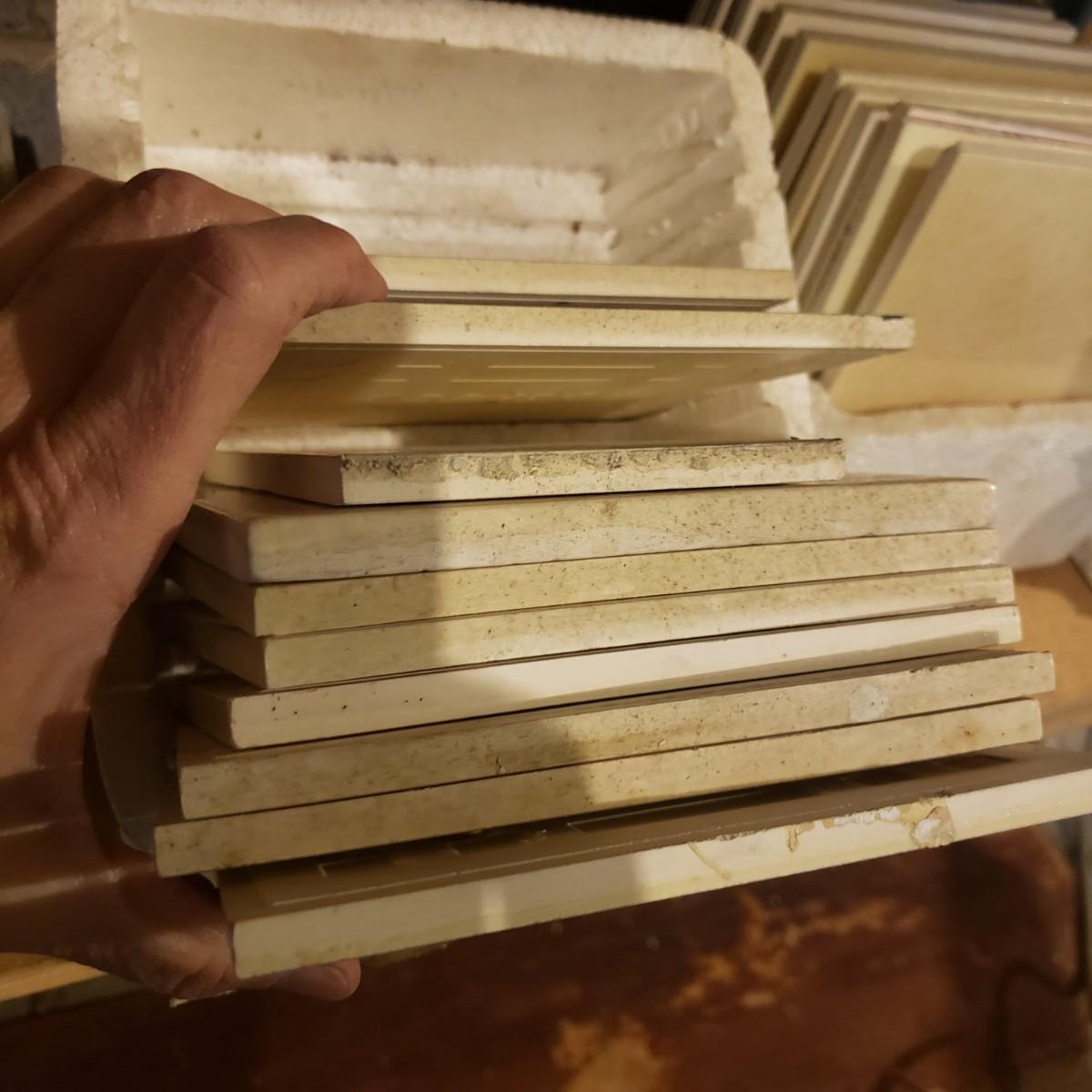 These beautiful Neatco tiles are exquisite! The tiles with patterns have a textured feel to them. The tiles measure 6" x 6". The smaller trim pieces measure 3" x 6". The solid colored tiles are smooth to the touch. See pictures for quantities of each style.
